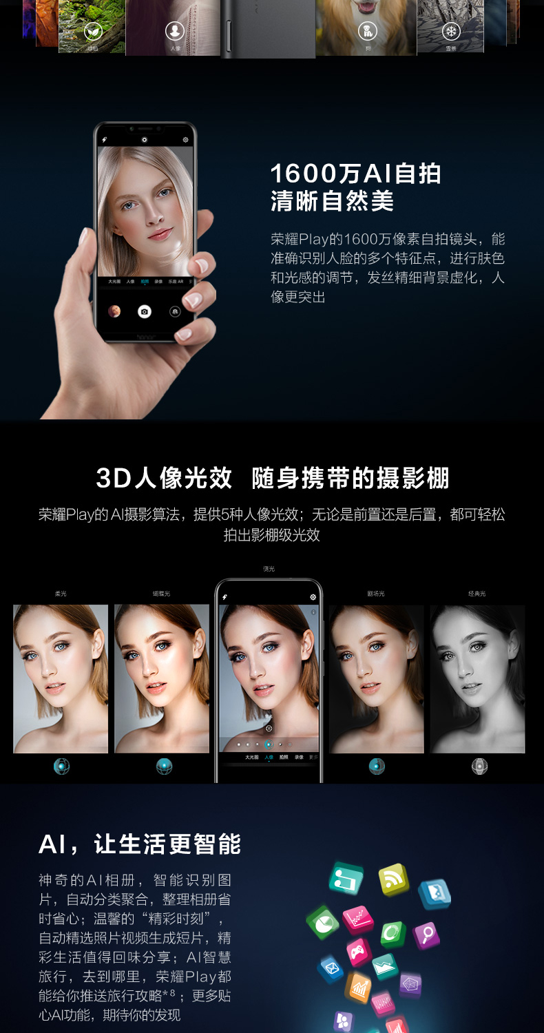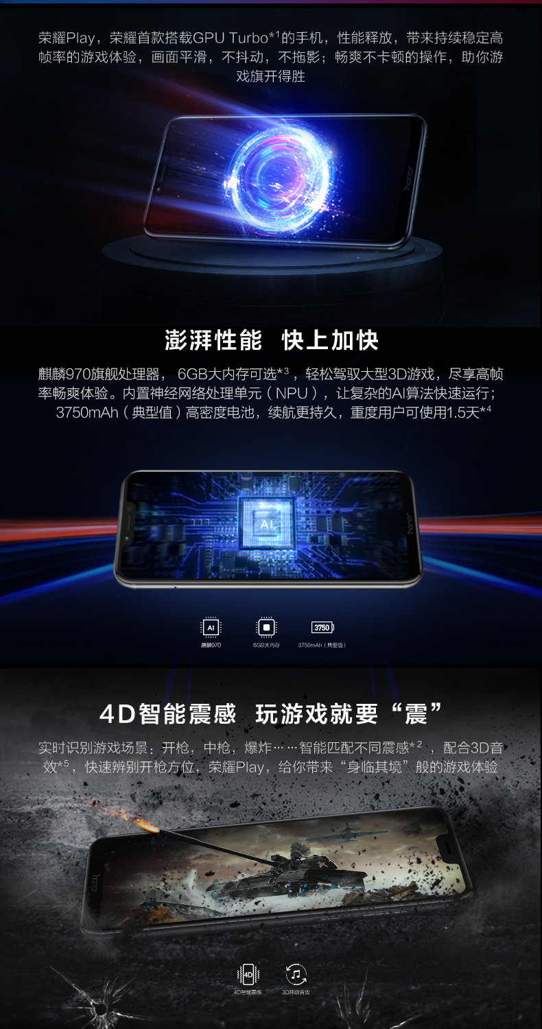 商品名称:荣耀/Honor 荣耀play全网通青春学生游戏手机荣耀双摄智能机paly年轻人手机