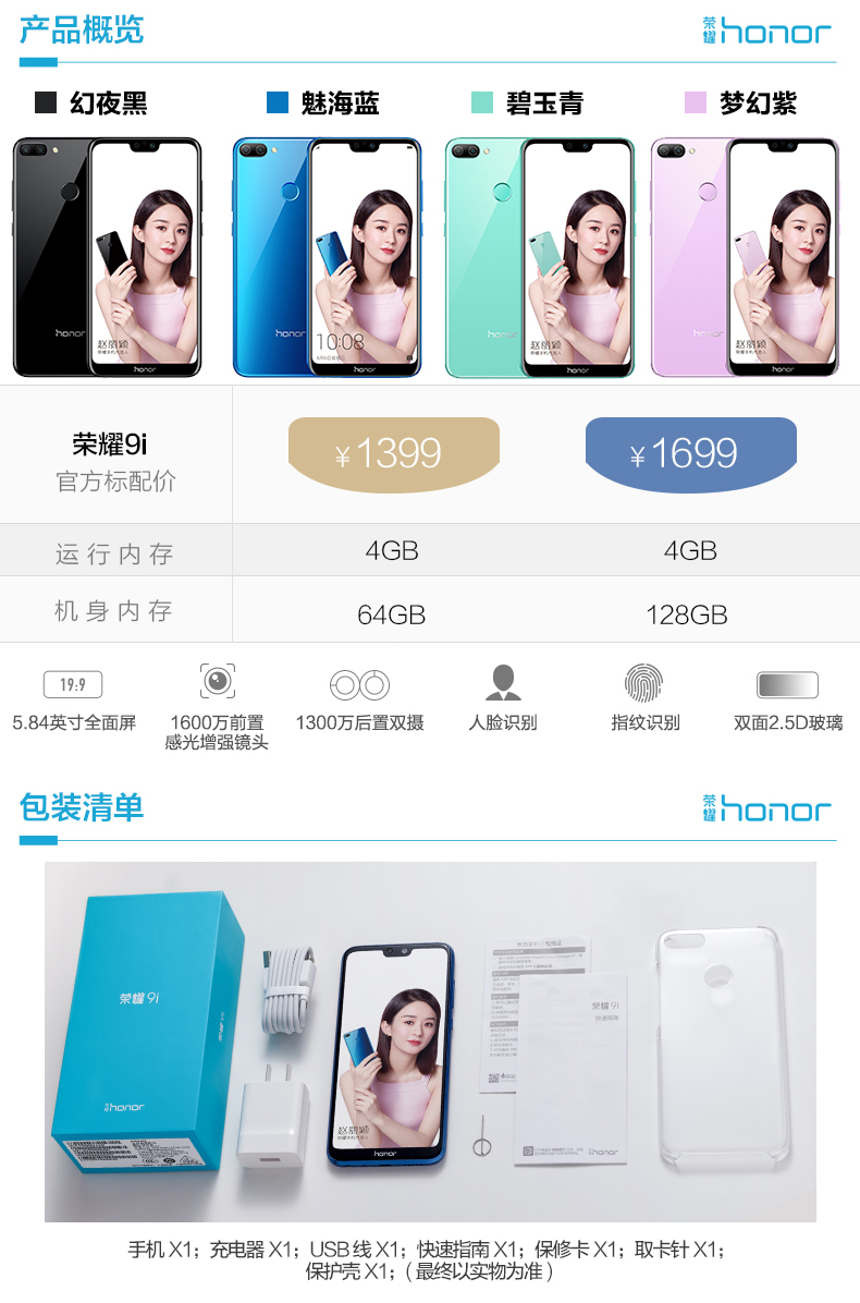 商品名称:荣耀/Honor 荣耀9i全网通4G智能手机