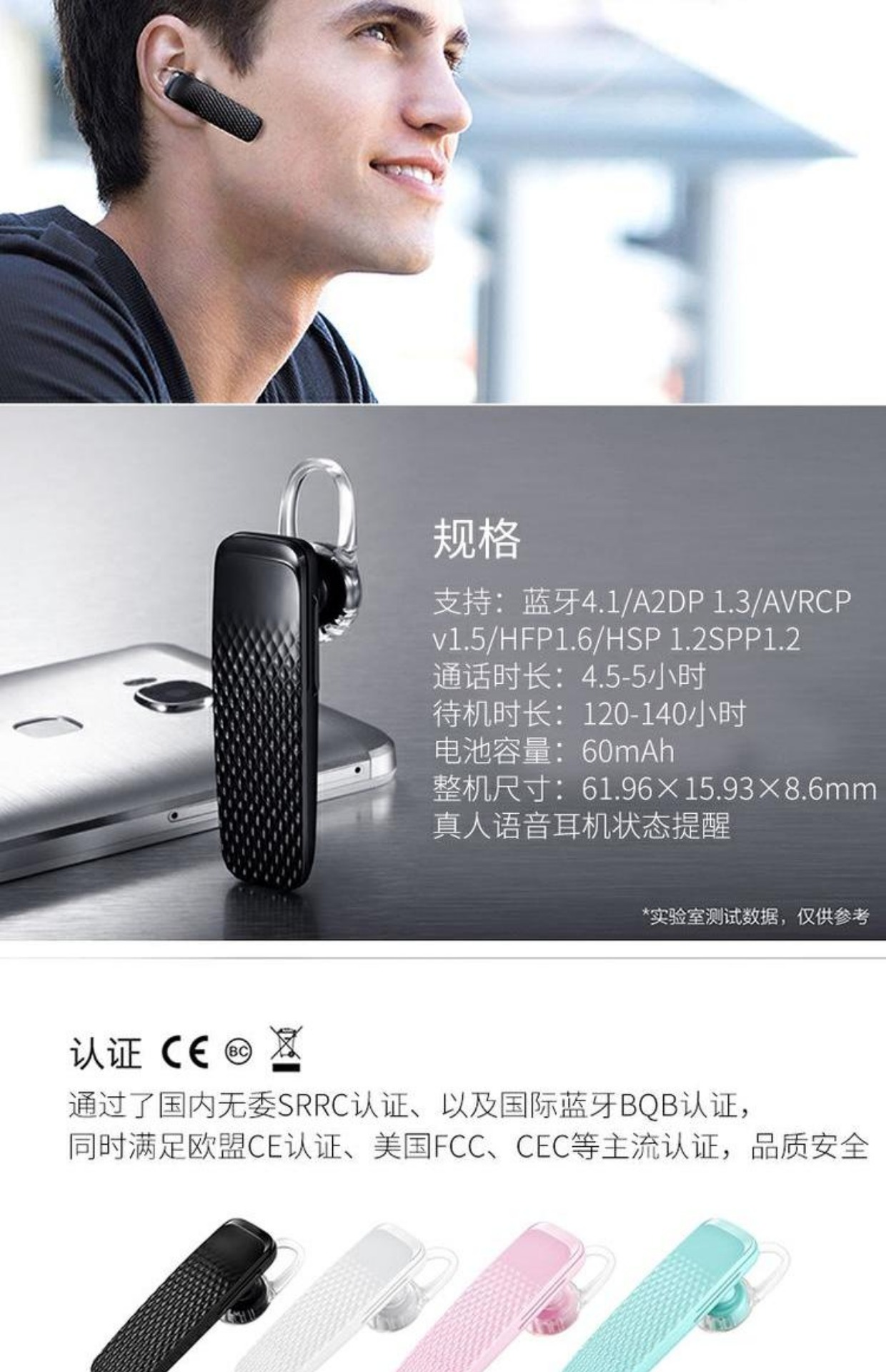 商品名称:华为/Huawei 蓝牙耳机 多彩迷你无线蓝牙耳机 通用音乐蓝牙 am04