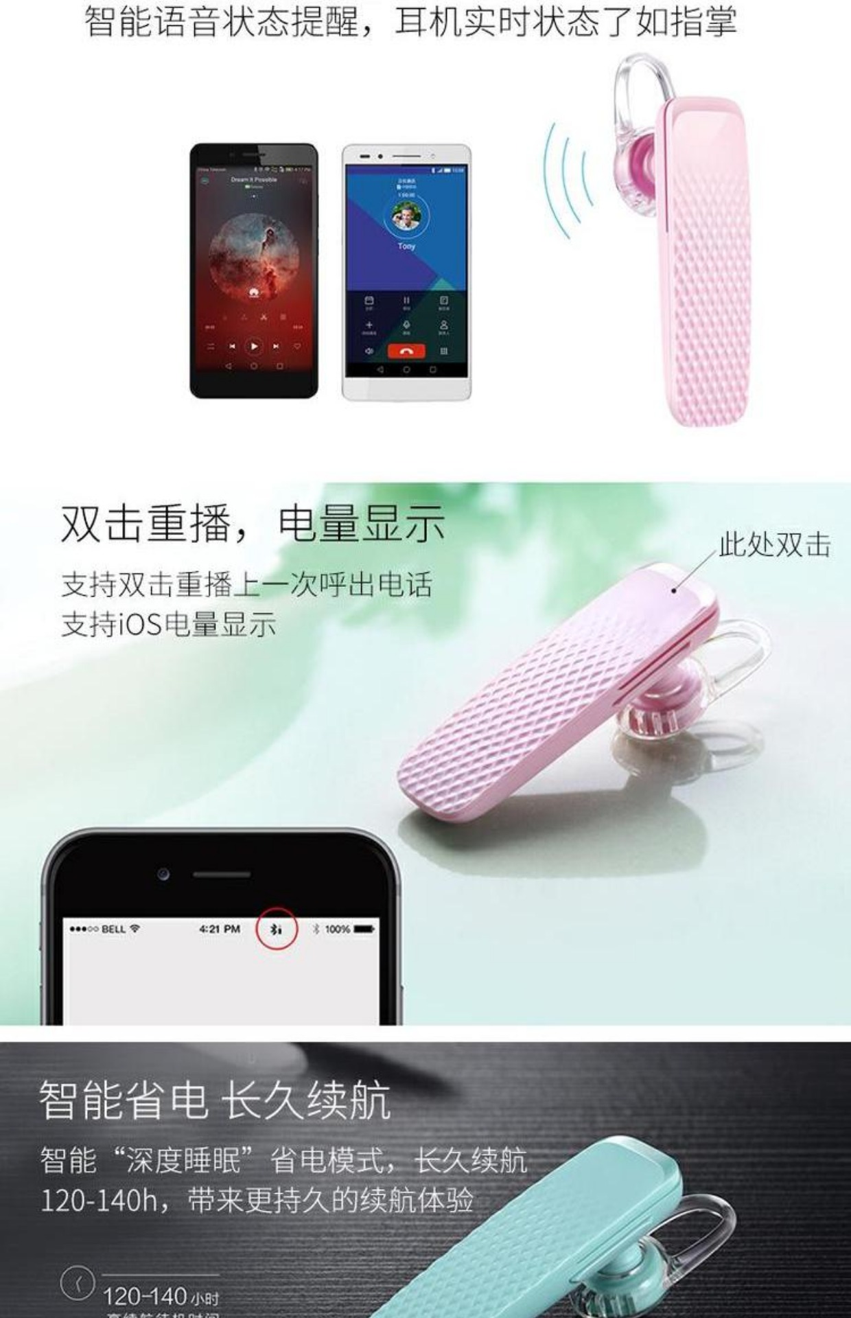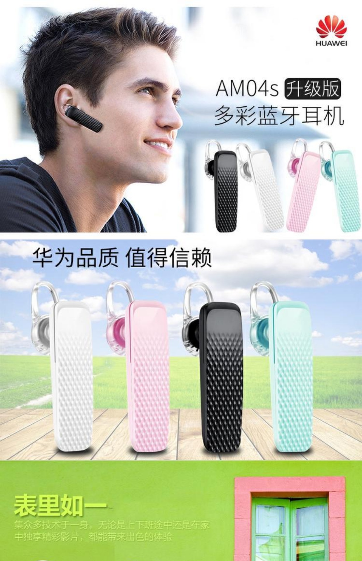华为/Huawei 蓝牙耳机 多彩迷你无线蓝牙耳机 通用音乐蓝牙 am04