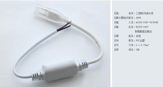 商品名称:三雄极光 LED高压灯带 光河2835 高亮防水220v 插头线