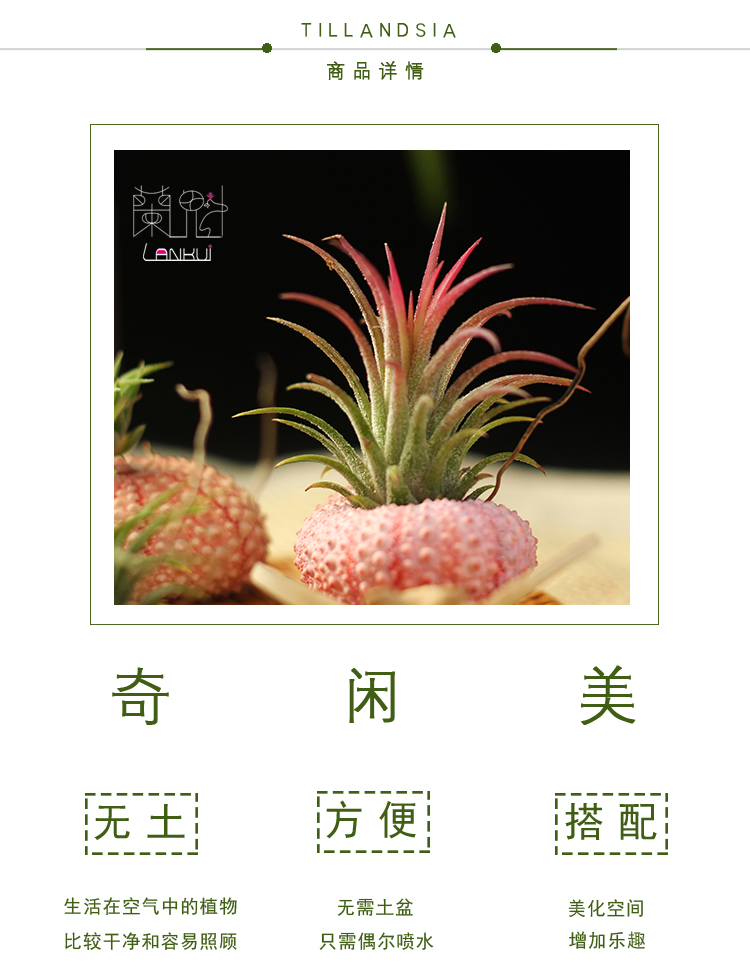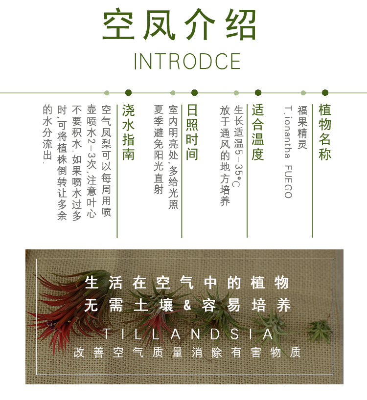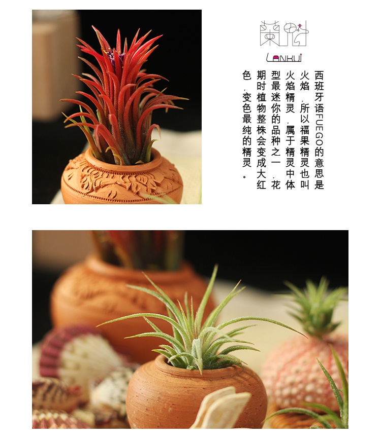商品名称:国产 兰魁 空气凤梨 无土植物 盆栽绿植T.ionantha FUEGO 空凤福果精灵