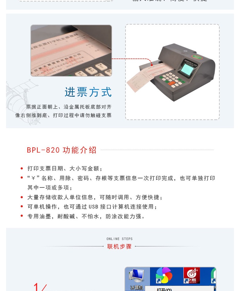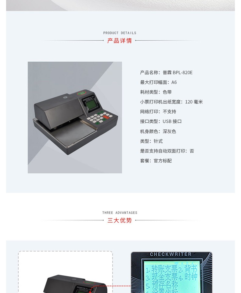 商品名称:普霖 BPL-820E支票打印机 银行进账单打印机可单机联机使用