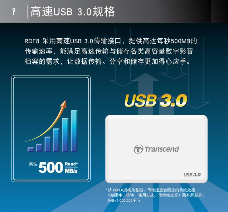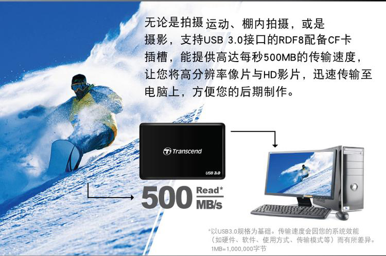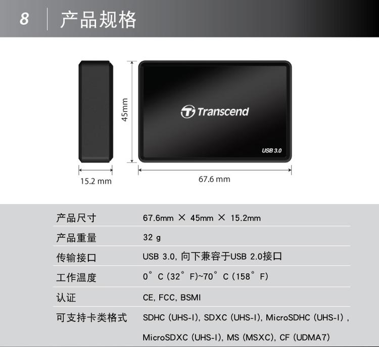 商品名称:Transcend/创见 USB 3.0多功能读卡器 TS-RDF8