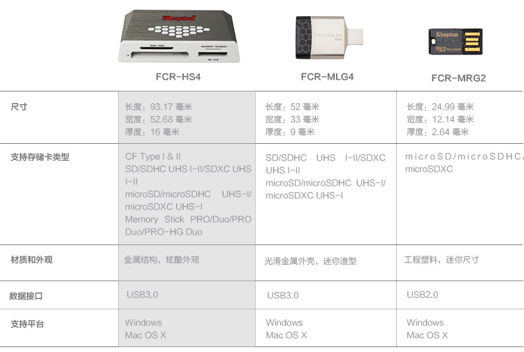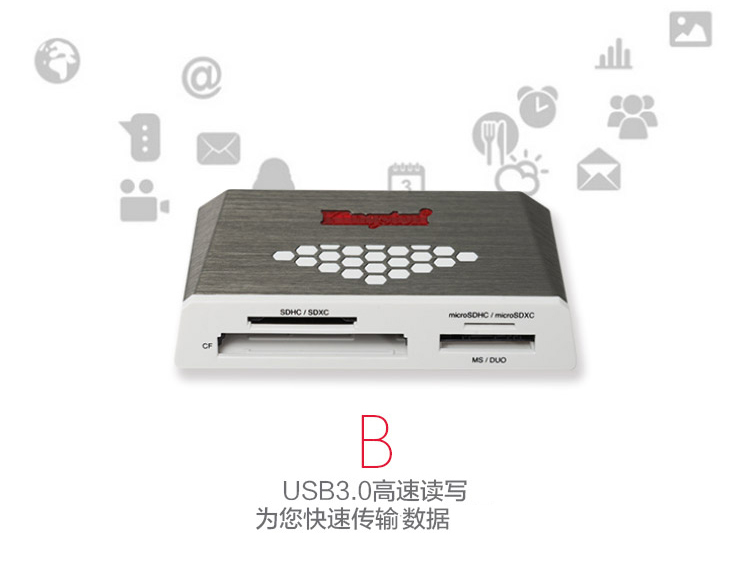 商品名称:金士顿 读卡器多合一 USB3.0 多功能读卡器 FCR-HS4IN0