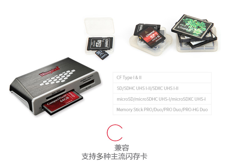 金士顿 读卡器多合一 USB3.0 多功能读卡器 FCR-HS4IN0