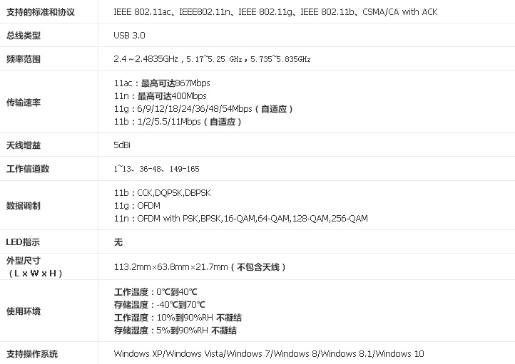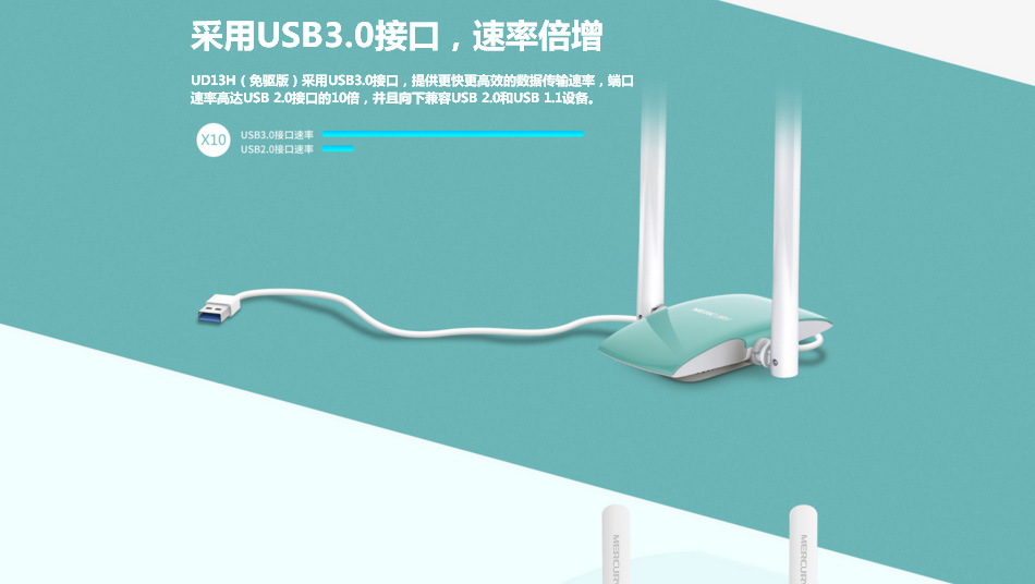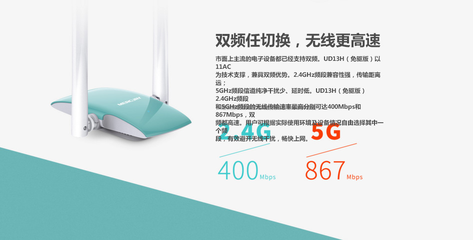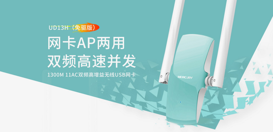 商品名称:水星 UD13H免驱版 1300M双频高增益双天线USB3.0高速接口无线网卡