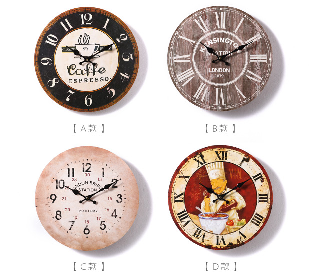 商品名称:国产 美式小复古静音挂钟北欧家用艺术时钟卧室客厅装饰创意简约钟表鐘