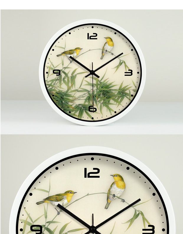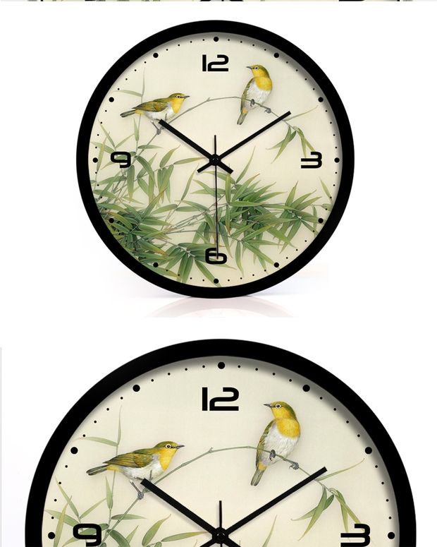 商品名称:国产 中式富贵竹子花鸟钟表石英钟静音卧室挂钟客厅时钟田园挂表37