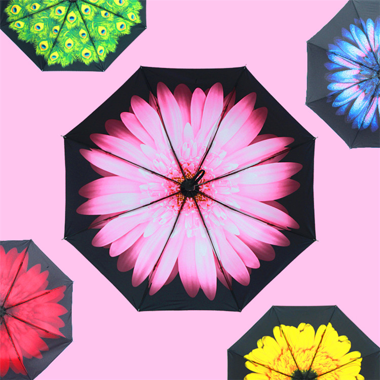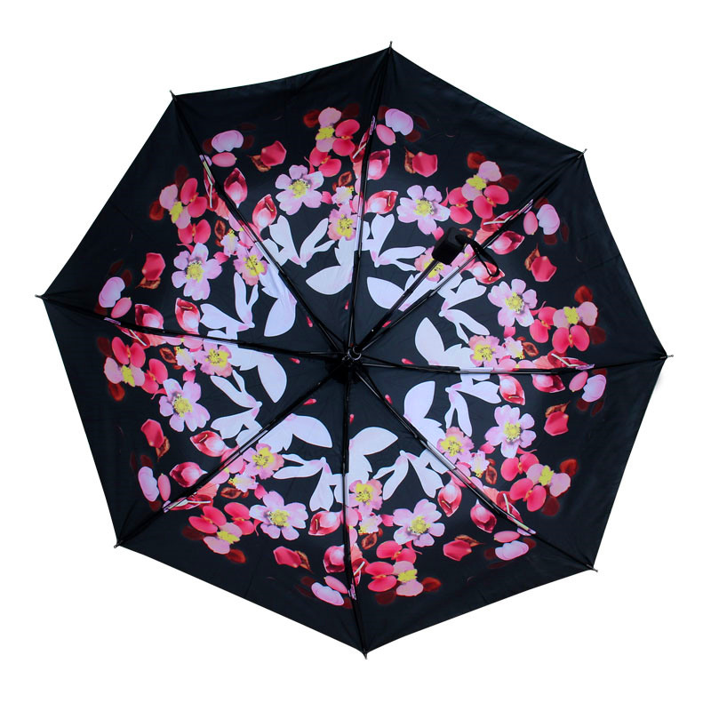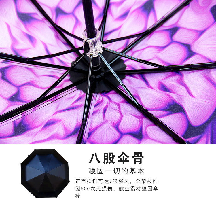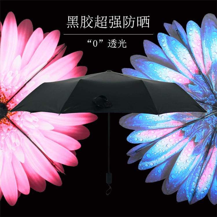 商品名称:国产 防紫外线遮阳伞 小清新黑胶手动三折叠伞太阳晴雨伞
