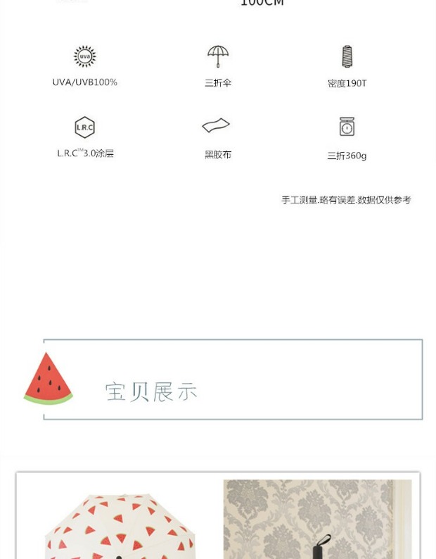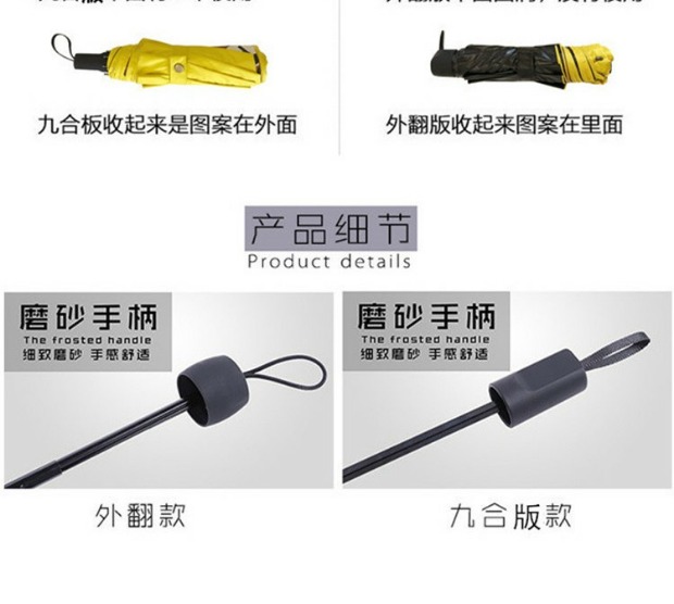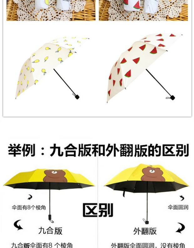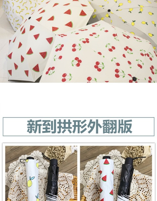 商品名称:国产 雨伞三折叠 晴雨防晒黑胶遮阳伞太阳伞柠檬香蕉