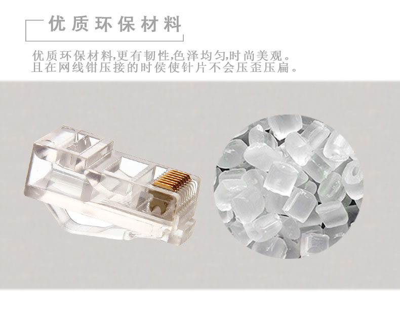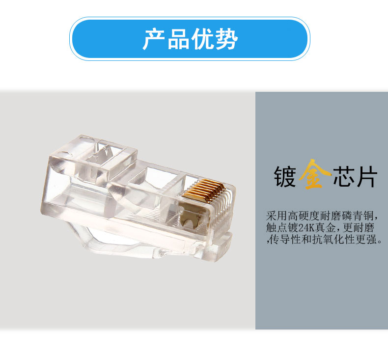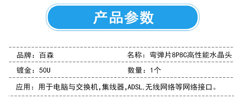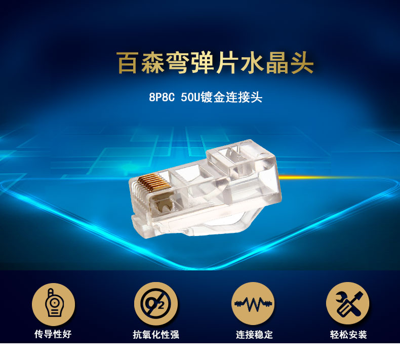 商品名称:BABSON/百森 网络超五类水晶头网线连接 线50U镀金(弯弹片防火)