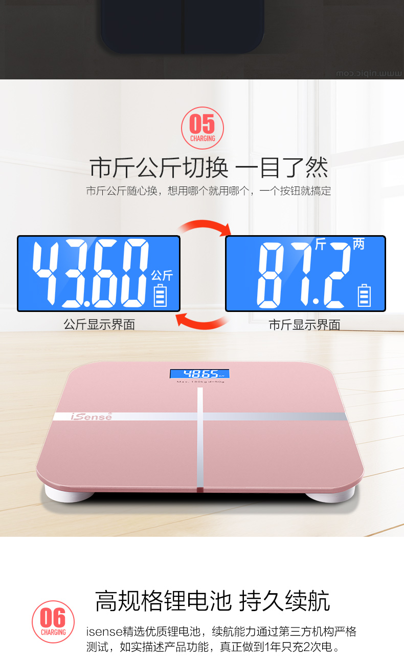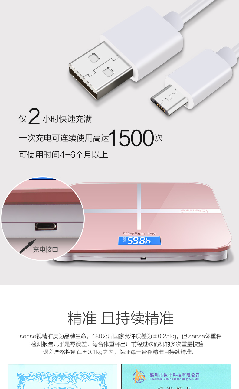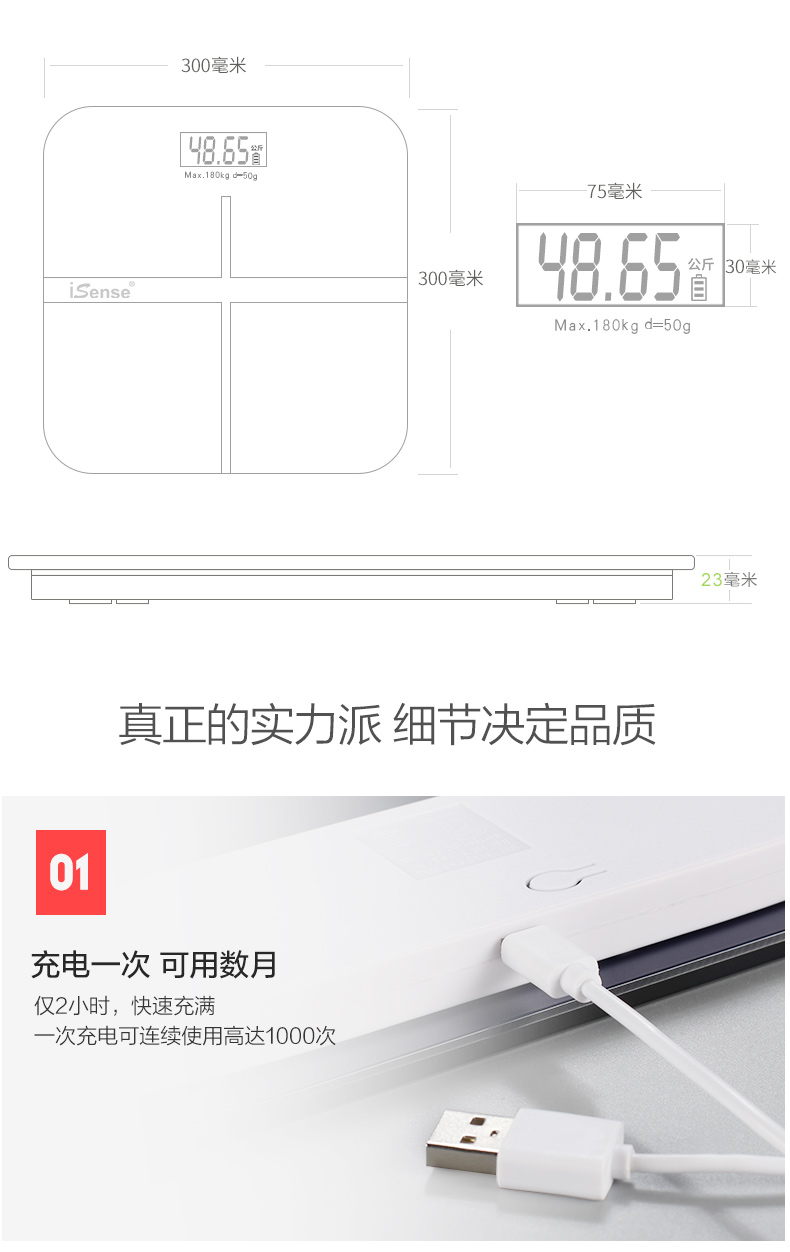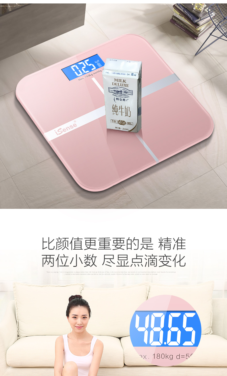 商品名称:iSense 充电款电子称小型体重秤家用人体秤精准成人减肥称重计女准