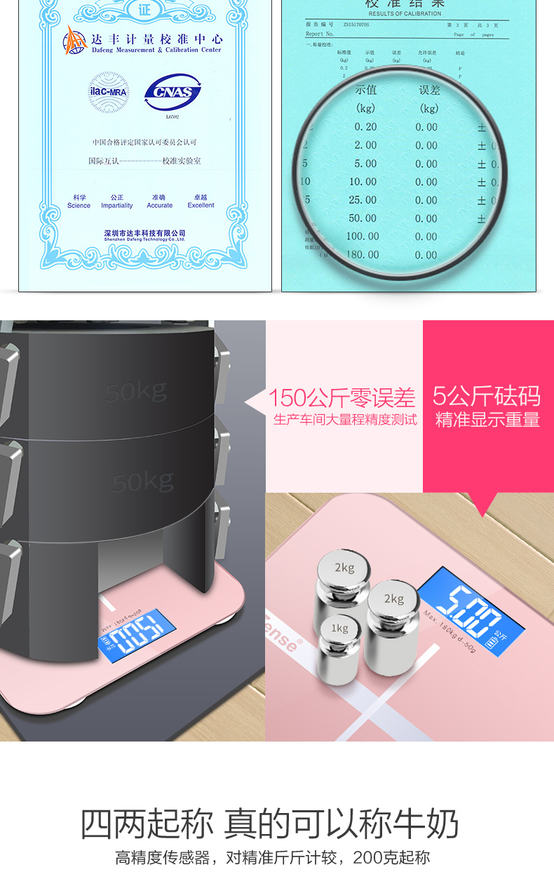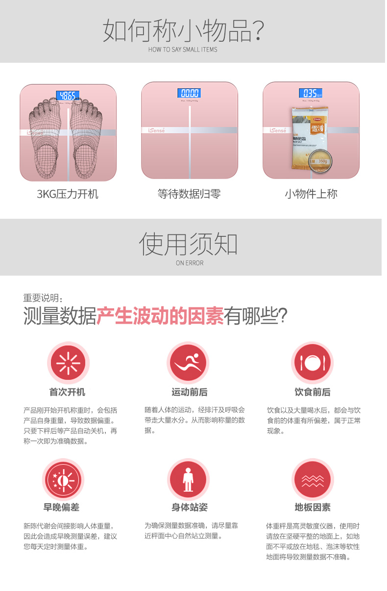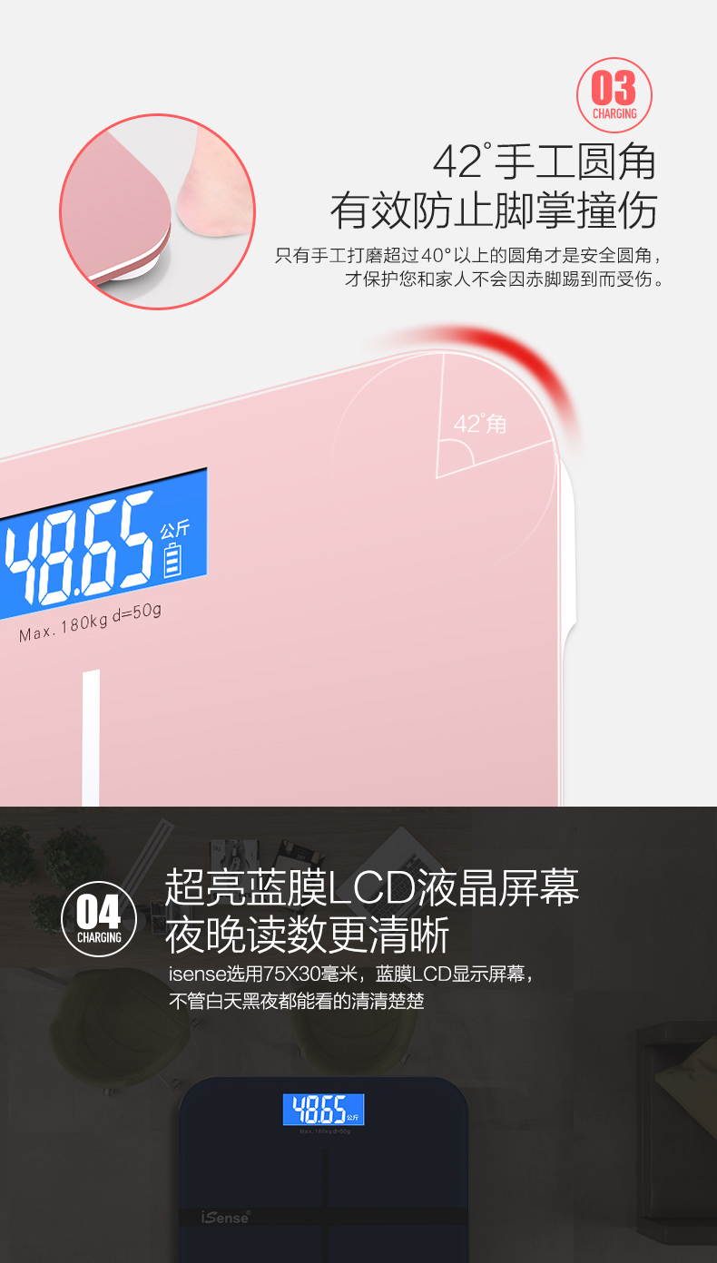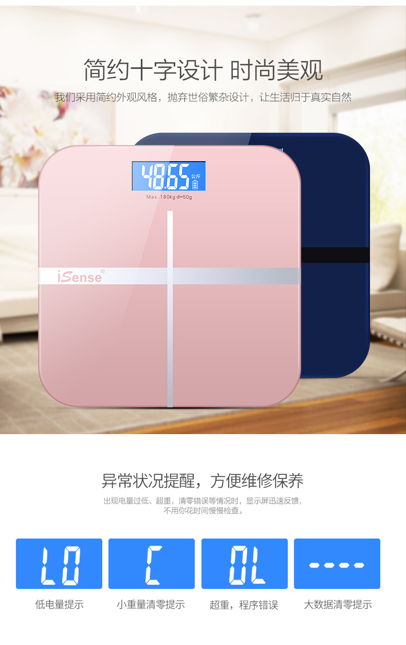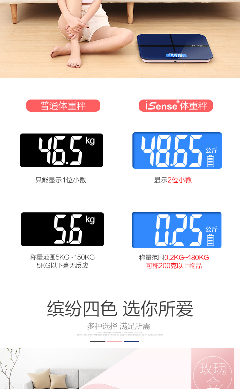 商品名称:iSense 充电款电子称小型体重秤家用人体秤精准成人减肥称重计女准