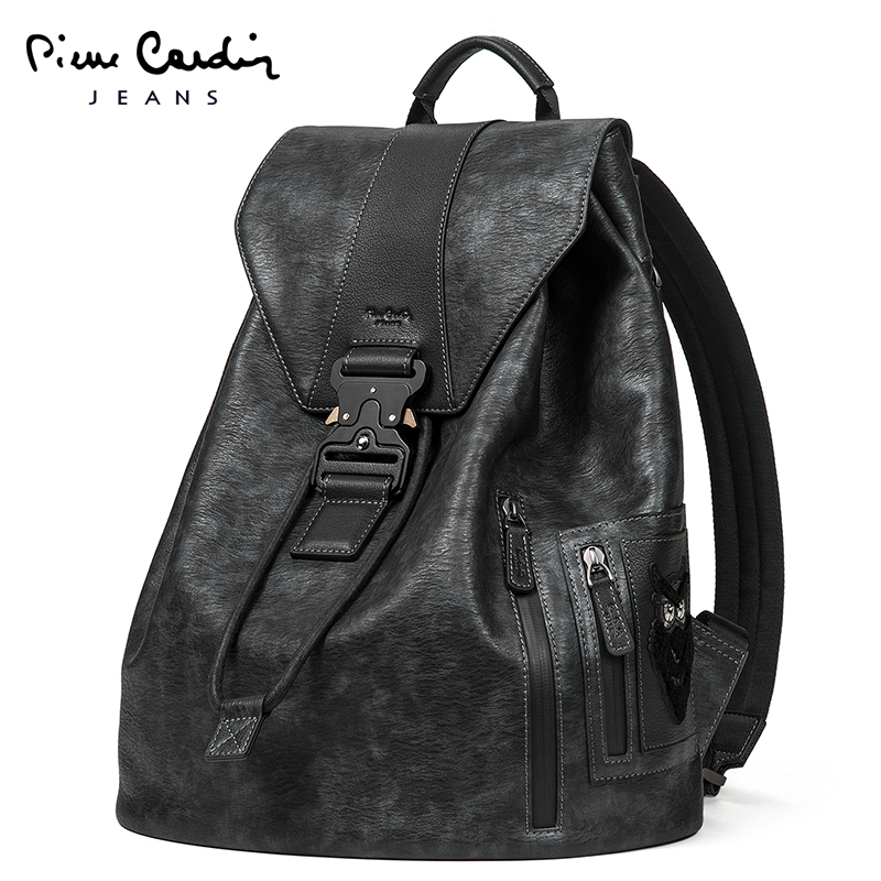 皮尔卡丹 双肩包男新款潮流大学生电脑书包简约大容量休闲背包
