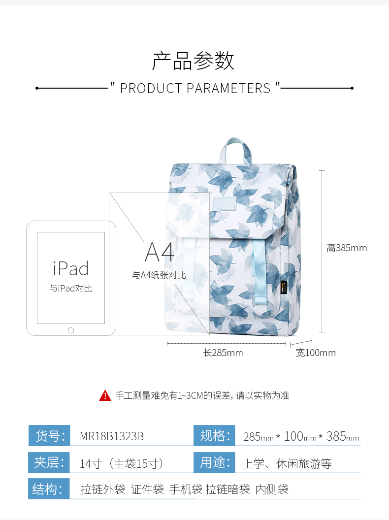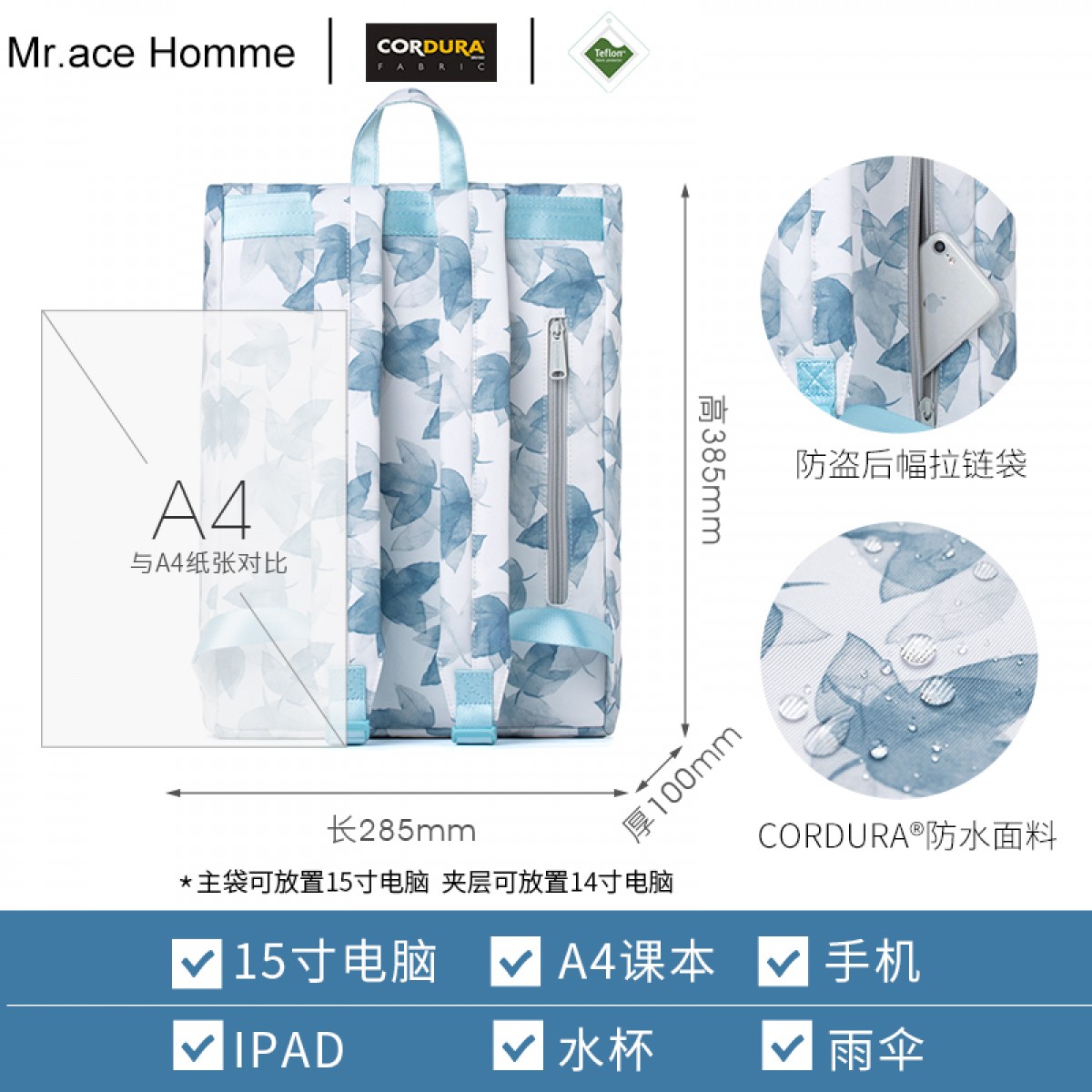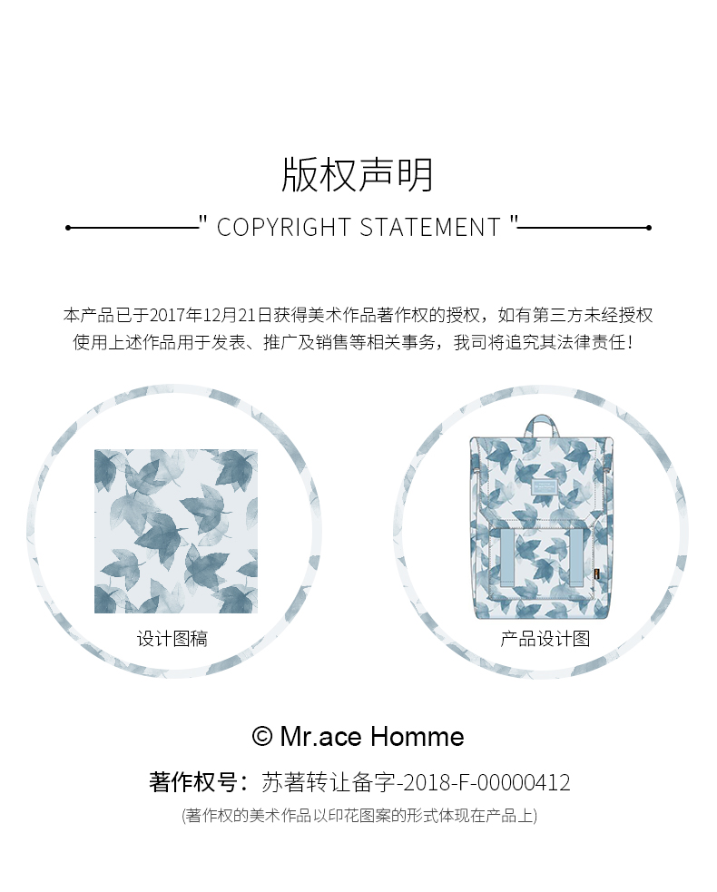 商品名称:Mr.ace Homme 新款双肩包女韩版潮中学生书包15寸大容量电脑背包男