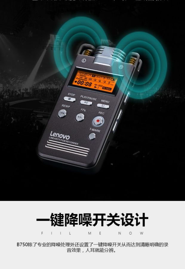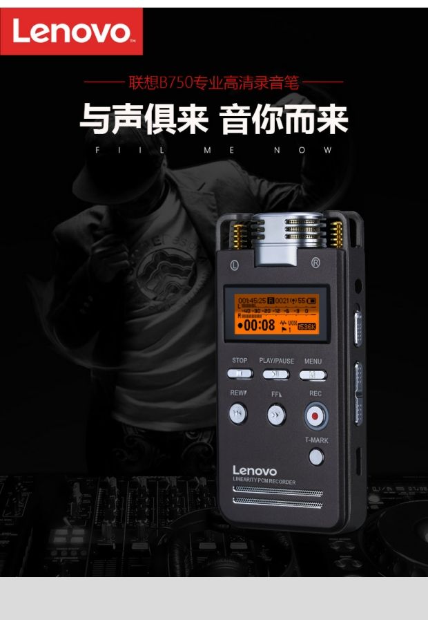 联想 专业16G录音笔高清远距降噪声控内录超长无损HIFI播放器 B750