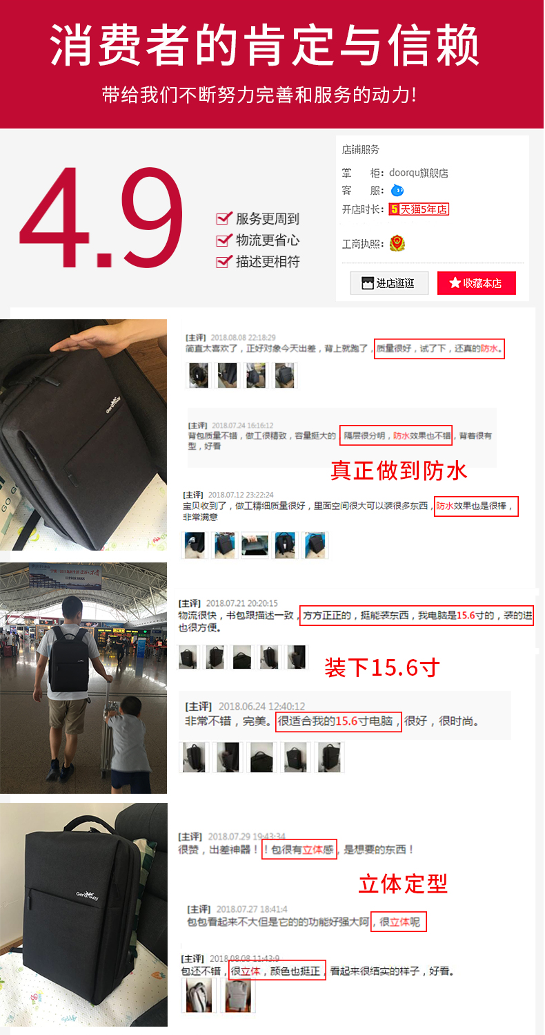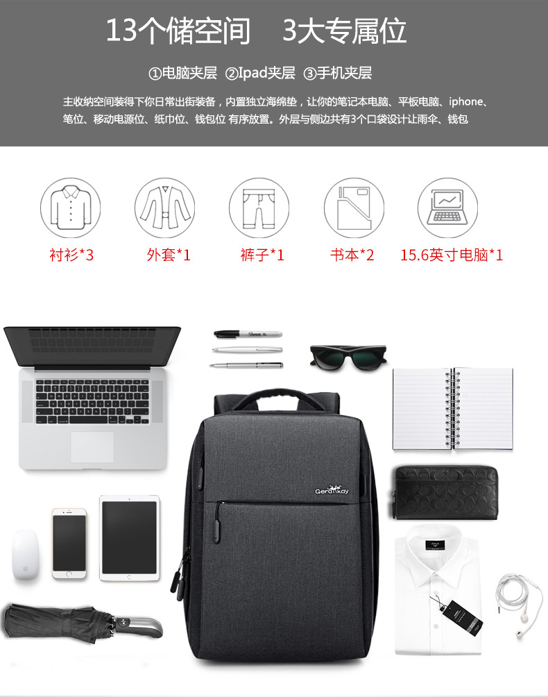 商品名称:国产 双肩背包男休闲多功能男士商务15.6寸电脑双肩包书包简约出差。