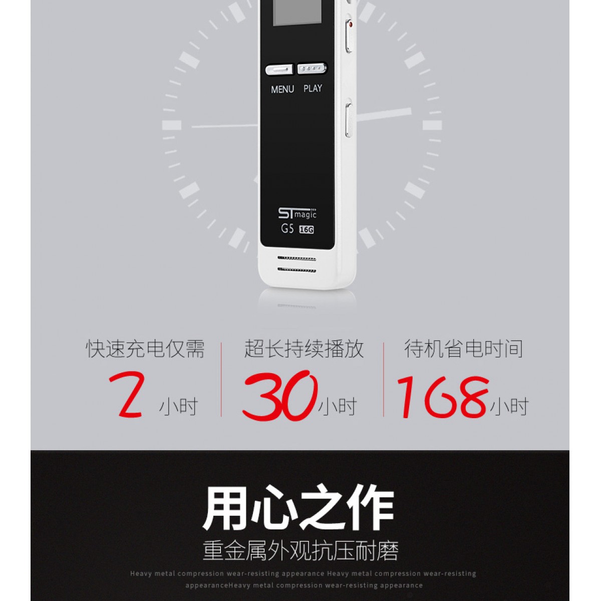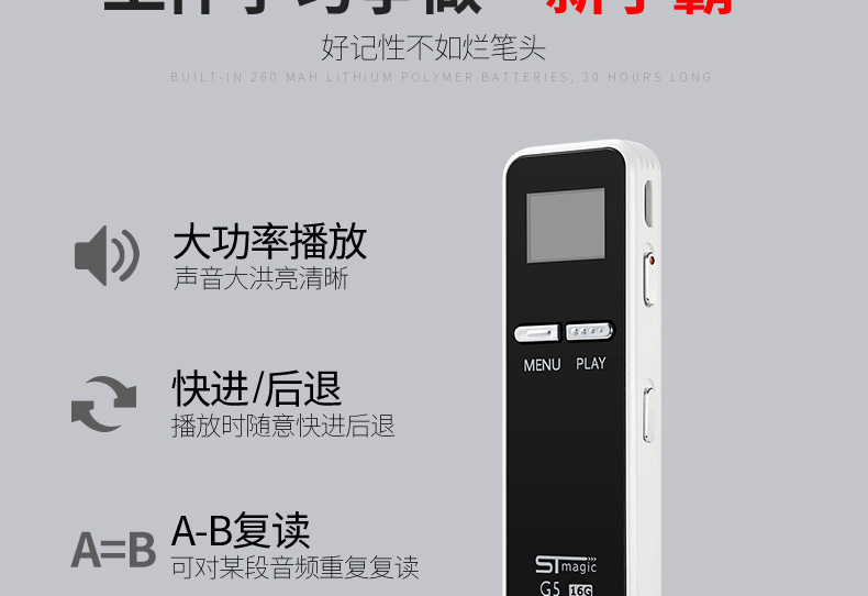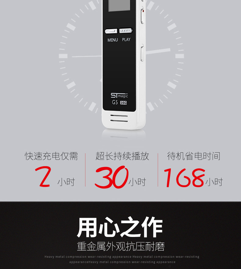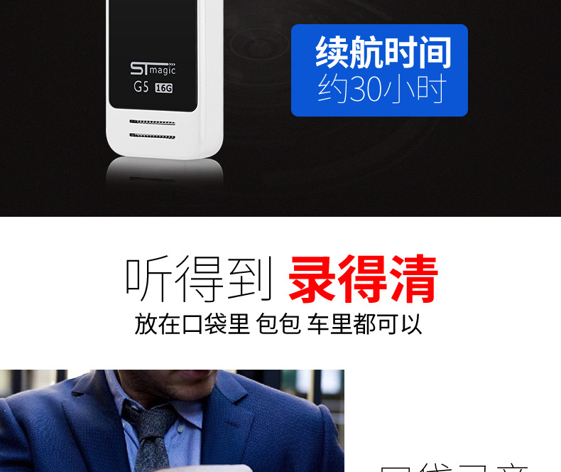 商品名称:赛帝曼克 录音复读笔 微型高清降噪16G 会议取证专用MP3超长待机 G5