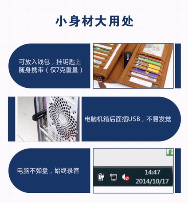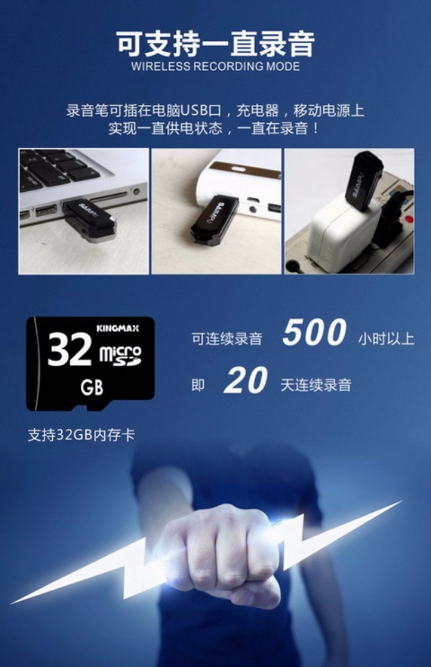 商品名称:三浦 微型插卡录音笔 高清带读卡器功能4小时录音边充边录 黑色 A16
