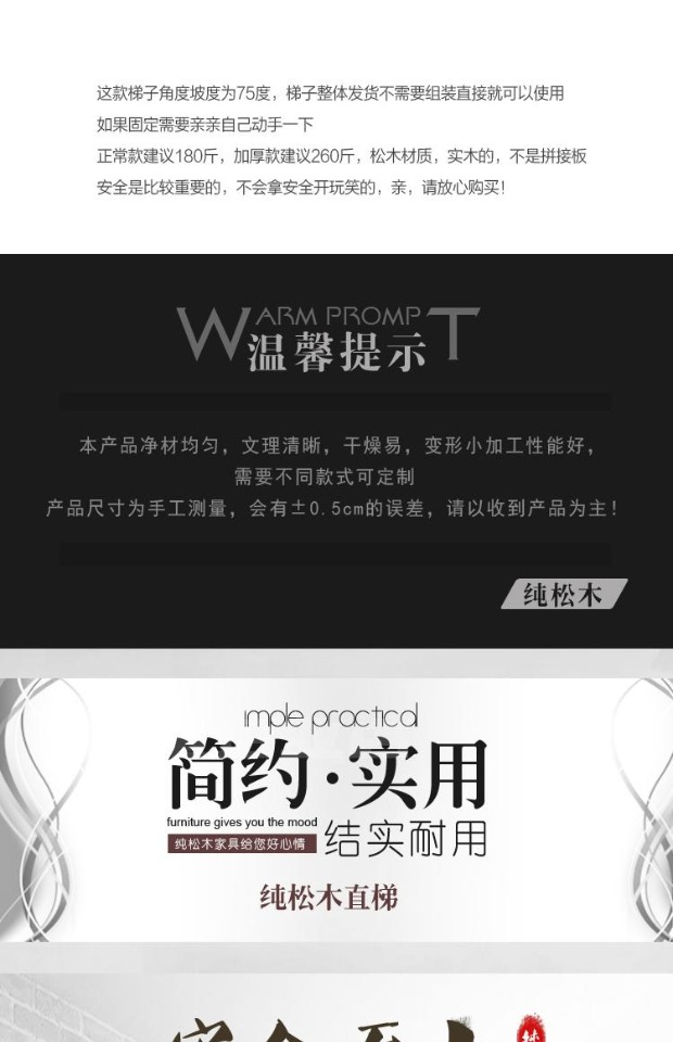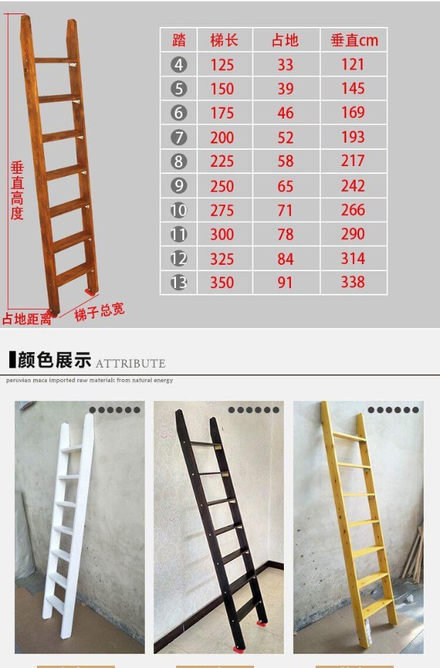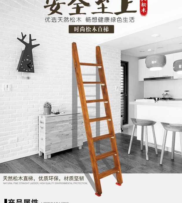 商品名称:国产 木梯子学生上下铺室内外家用梯子直梯木质人字梯实木阁楼楼梯折叠 BXSX-1