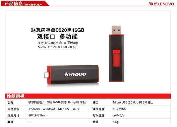 商品名称:联想 手机U盘16g USB2.0高速OTG闪存盘双接口电脑两用U盘安卓 C520