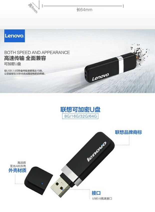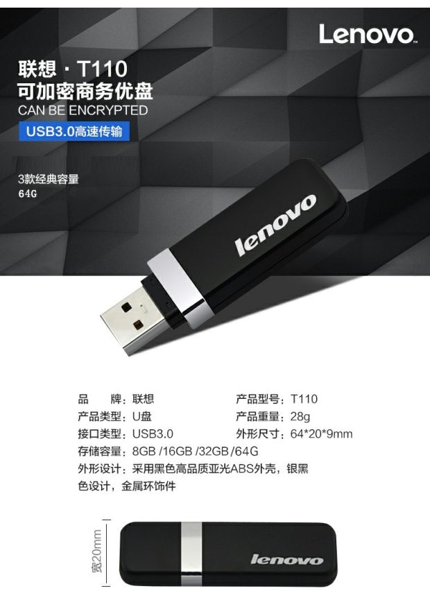 商品名称:联想 U盘 64g盘 高速USB3.0接口防水 T110