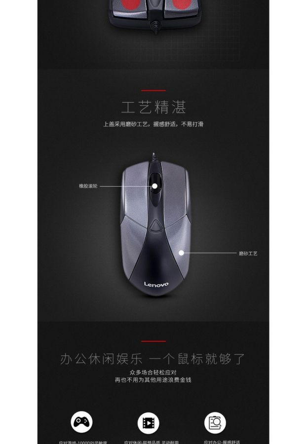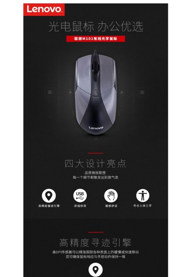 商品名称:联想 有线鼠 台式笔记本电脑办公电竞游戏通用大鼠标 USB M101