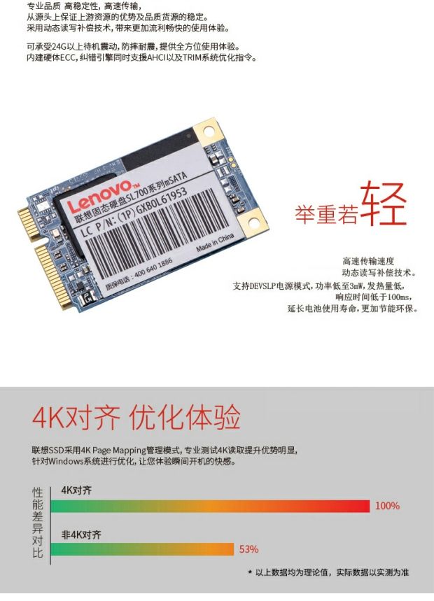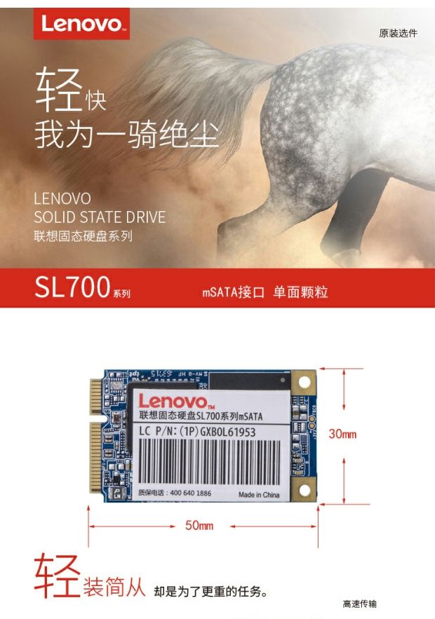 商品名称:联想/lenovo 128G SSD 固态硬盘 SATA 协议 SL700 MSATA