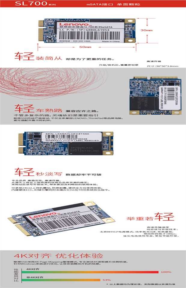 商品名称:联想/lenovo 固态硬盘 256G MSATA SSD mSATA 接口 SL700