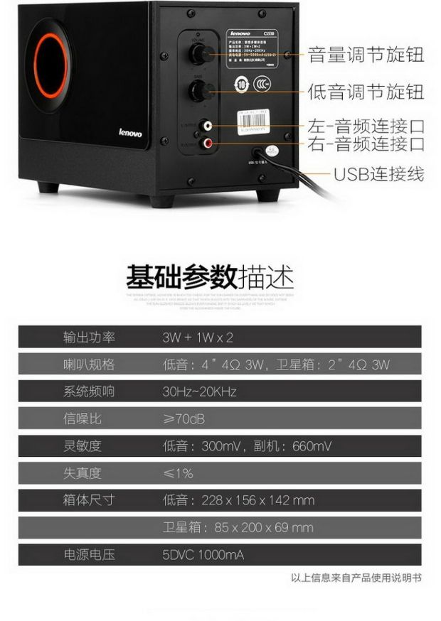 商品名称:联想/lenovo 原装音响套装低音炮家用笔记本电脑台式小音箱 C1530