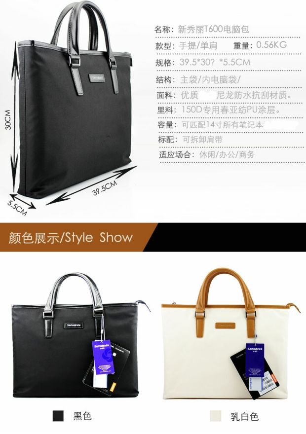 商品名称:国产 联想 新秀丽T600电脑包 14英寸单肩男女公文便携手提笔记本单肩包