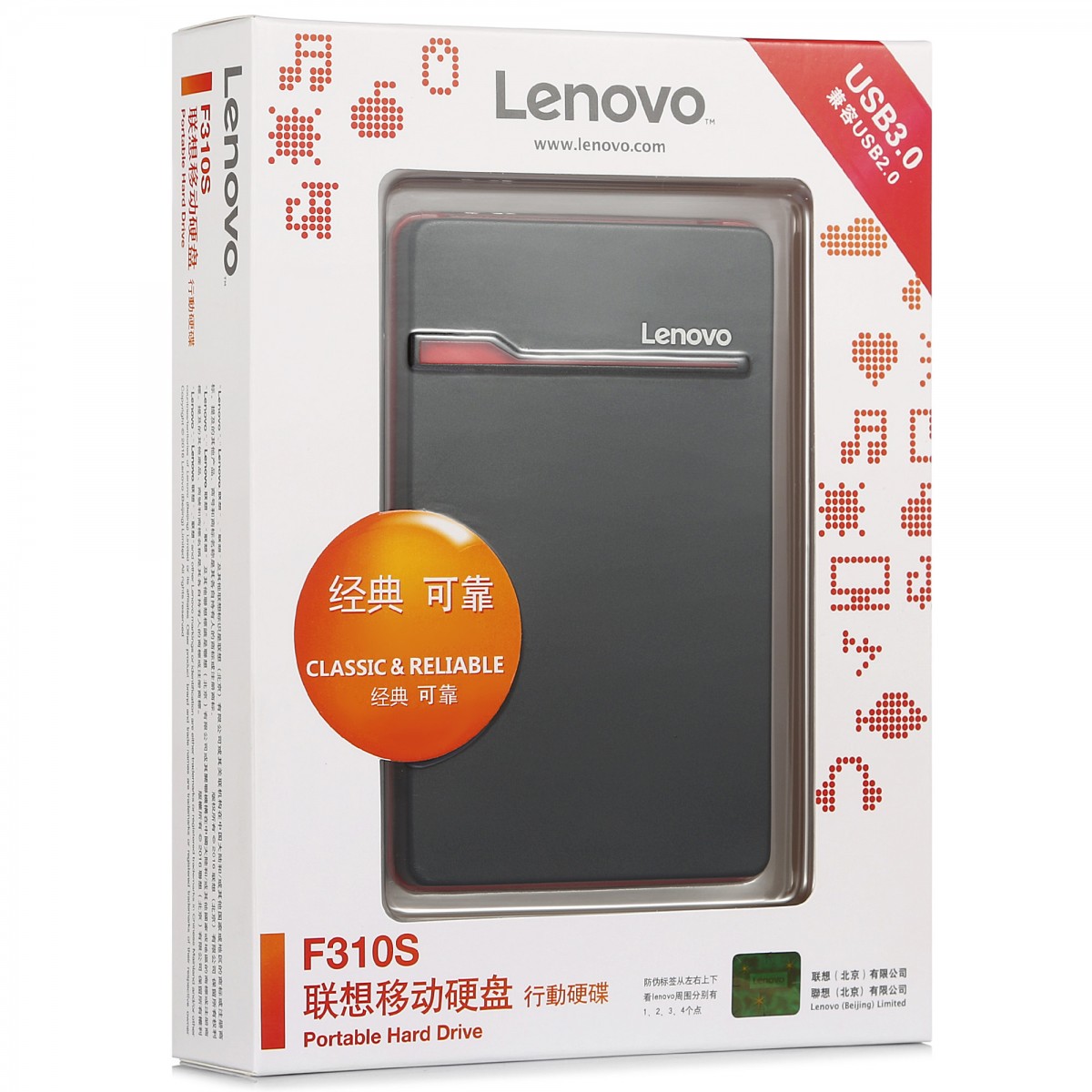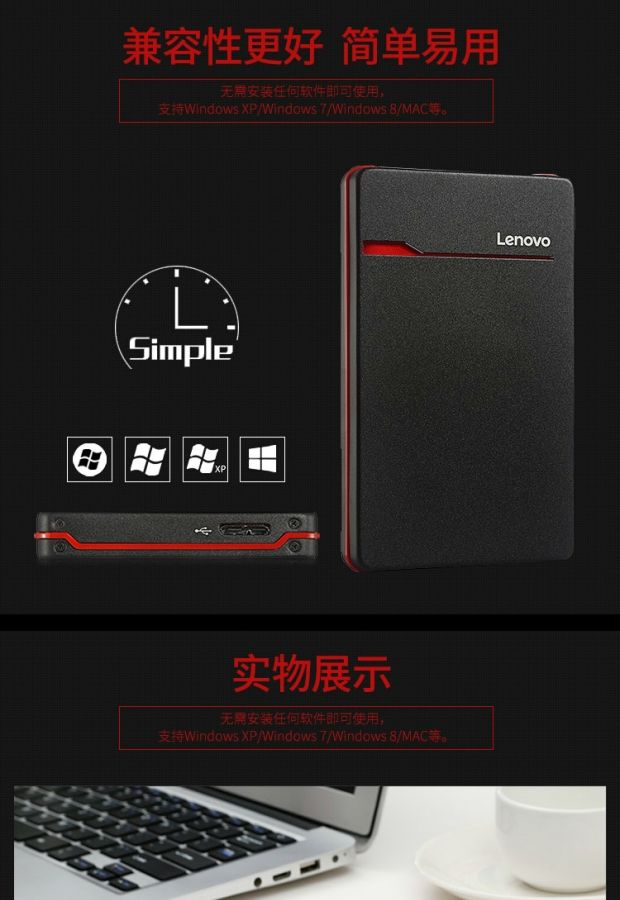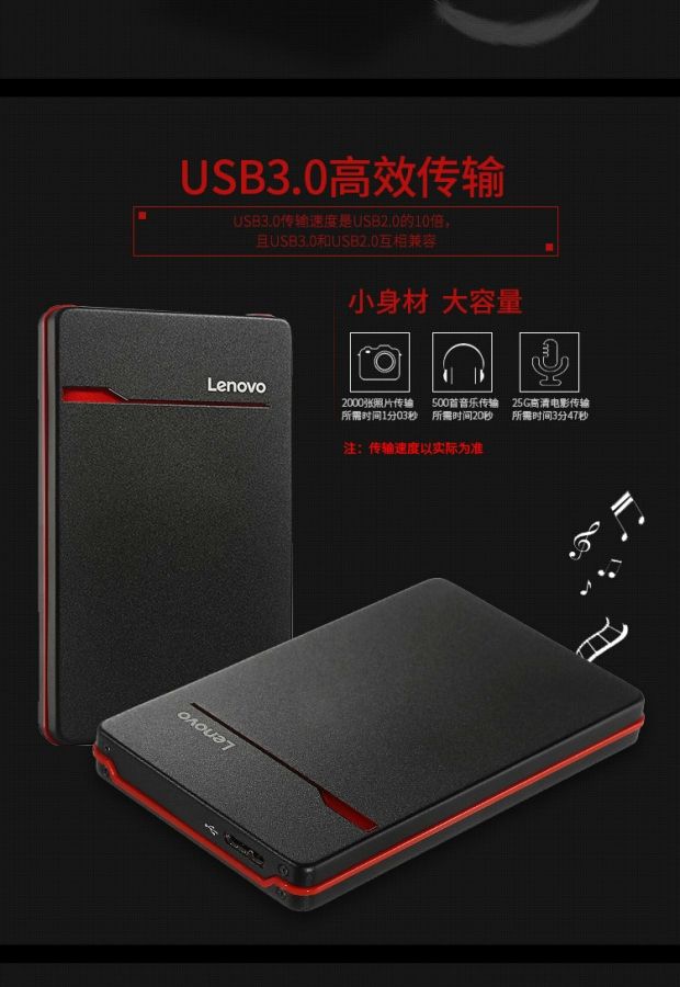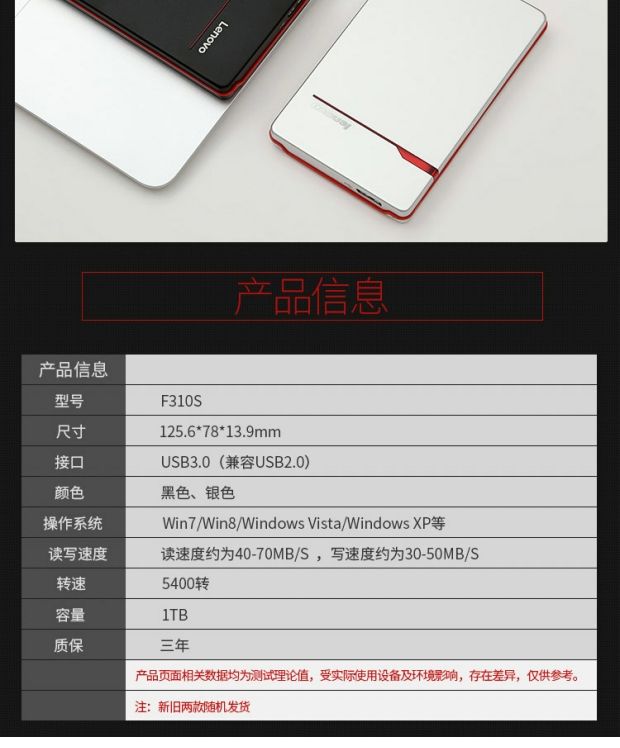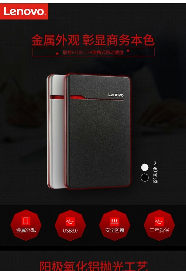 商品名称:联想 硬盘 1T usb3.0移动硬盘1tb金属商务超轻薄硬盘2.5英寸 F310S