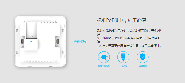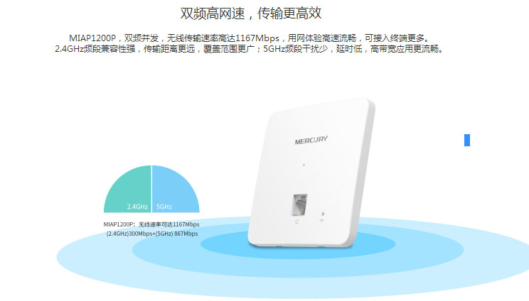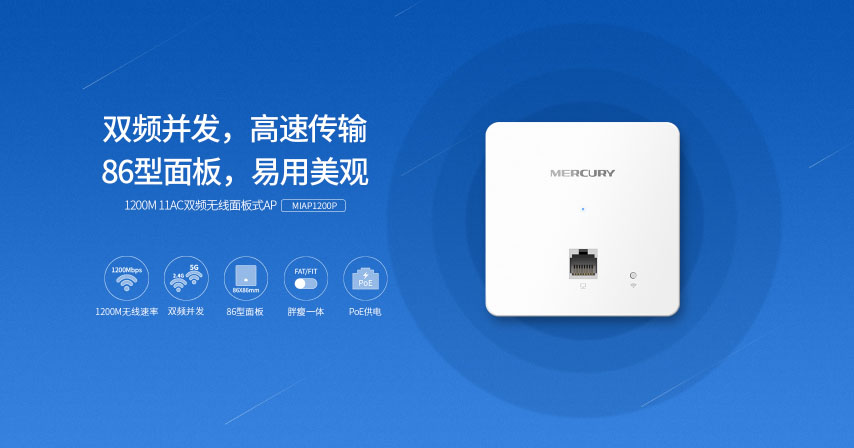 商品名称:水星 MIAP1200P 标准POE胖瘦一体1200M双频无线86面板式AP