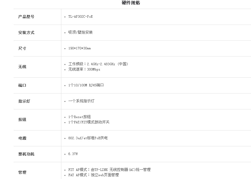 商品名称:TP-LINK 吸顶式无线AP TL-AP302C-PoE酒店宾馆