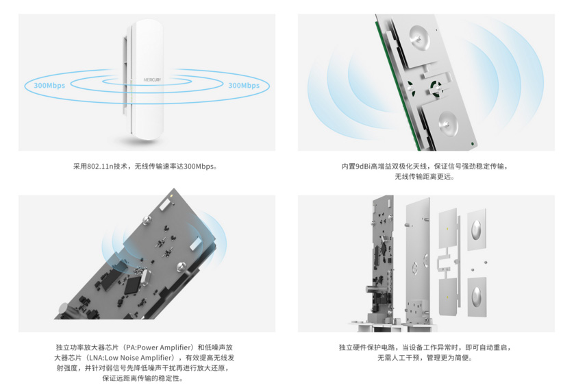 商品名称:水星 MWB205 单只装 2.4GHz 300M无线网桥(5公里)