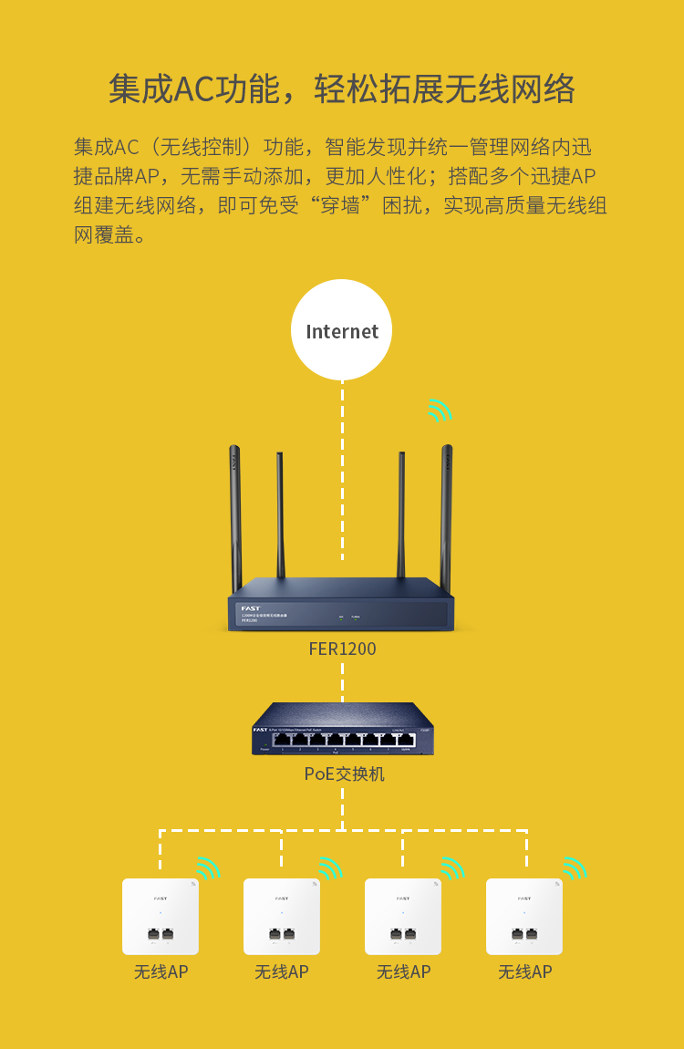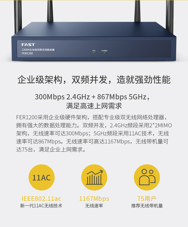 商品名称:迅捷 FER1200 1200M企业级双频无线路由器