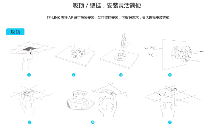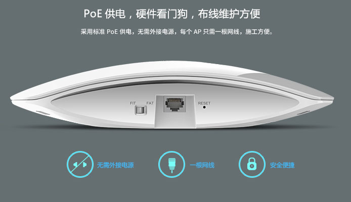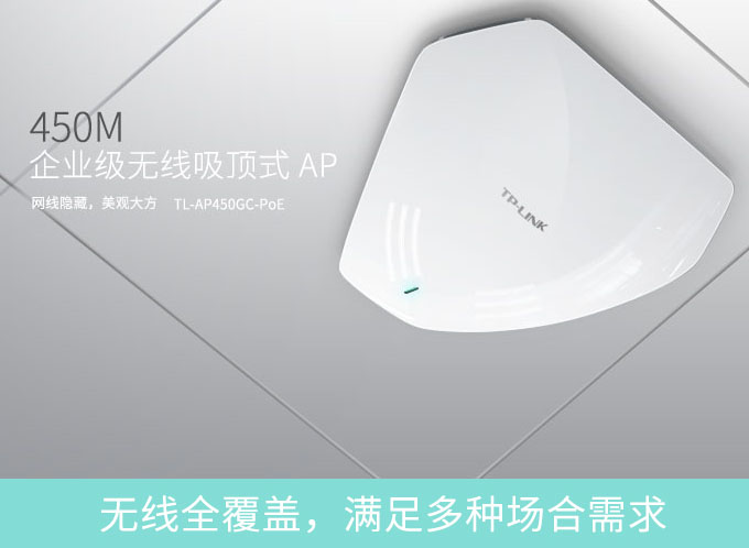 商品名称:TP-LINK TL-AP450GC-PoE 450M室内吸顶式无线AP酒店宾馆无线覆盖