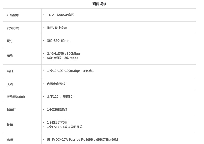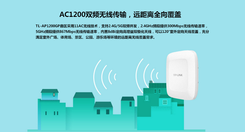 商品名称:TP-LINK TL-AP1200GP扇区 双频室外无线AP基站大功率定向wifi覆盖