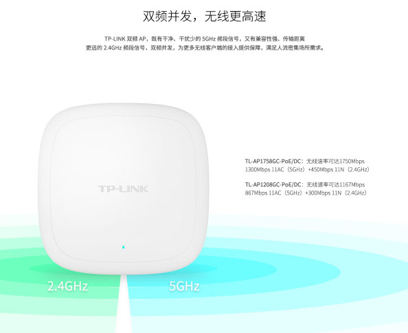 TP-LINK TL-AP1758GC-PoE/DC 1750M双频无线吸顶式AP酒店商场
