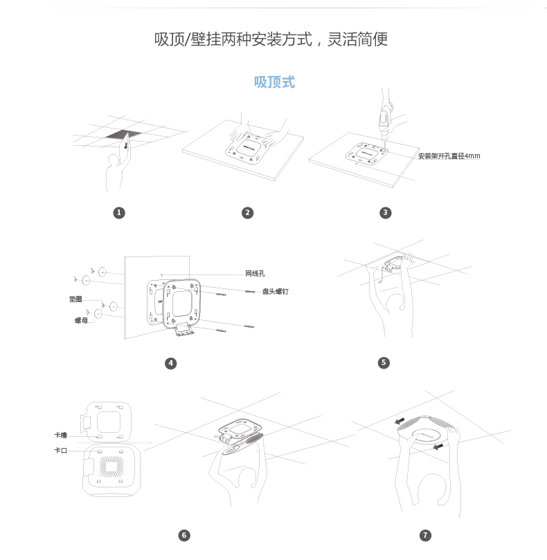商品名称:TP-LINK TL-HDAP3500C-PoE四频吸顶式无线AP室内大功率wifi企业级