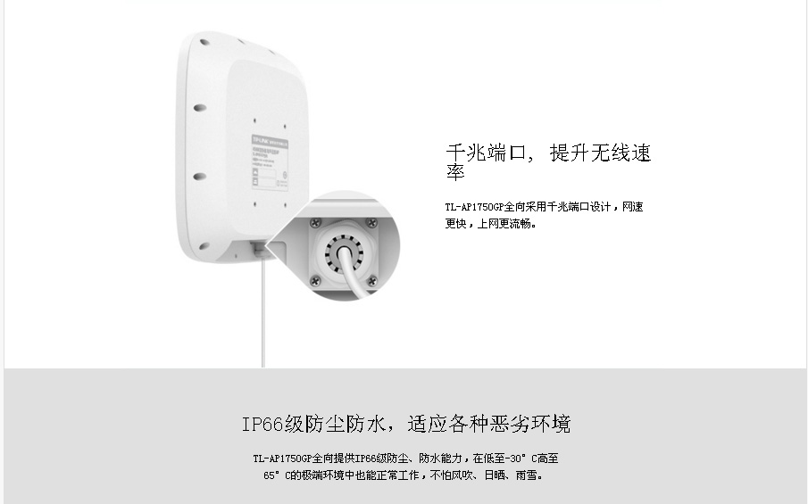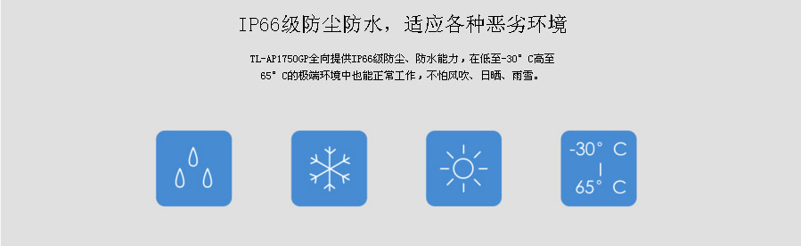 专业室外壳体设计,防水、防尘等级可达IP66,工作温度可达-30℃~65℃,适应各种恶劣环境