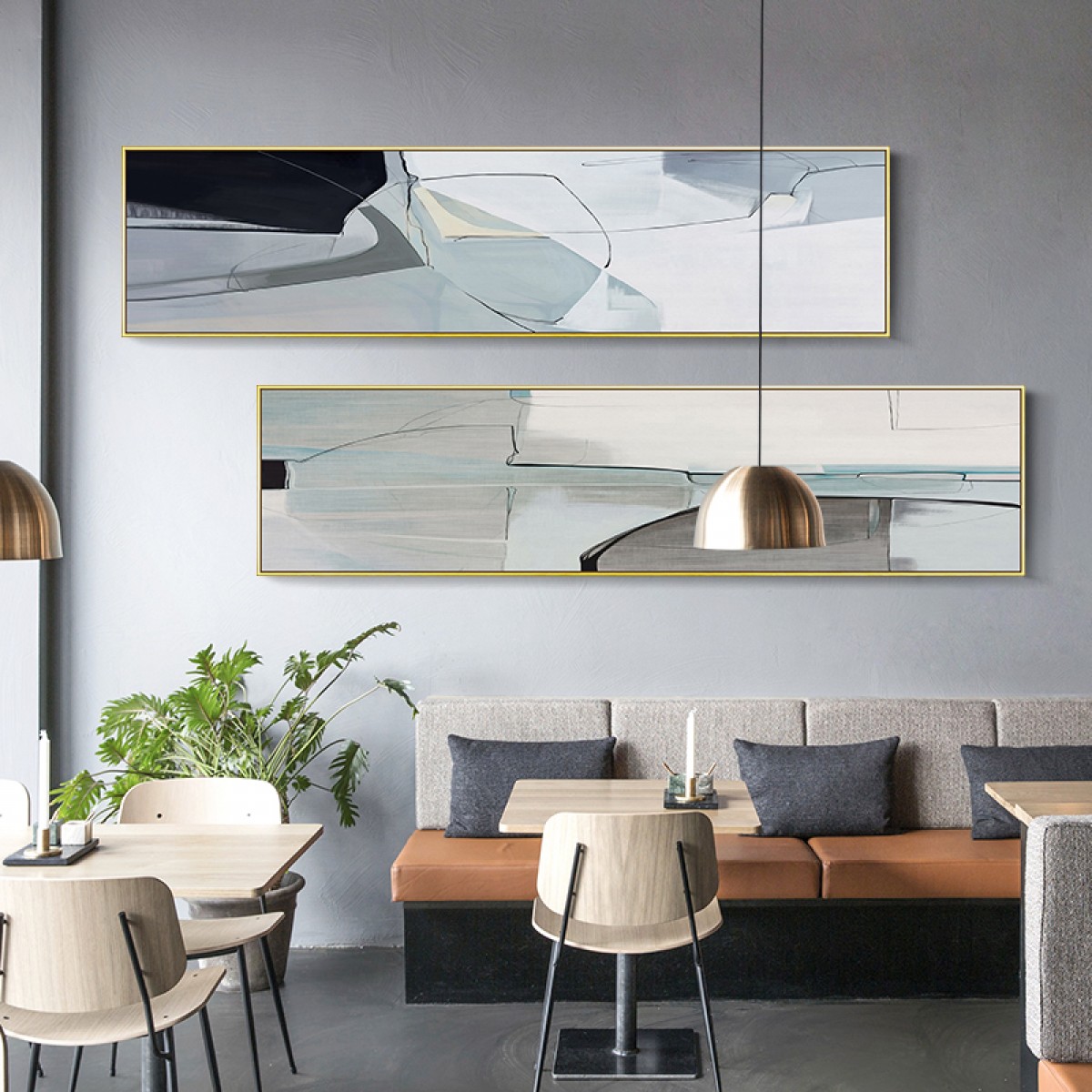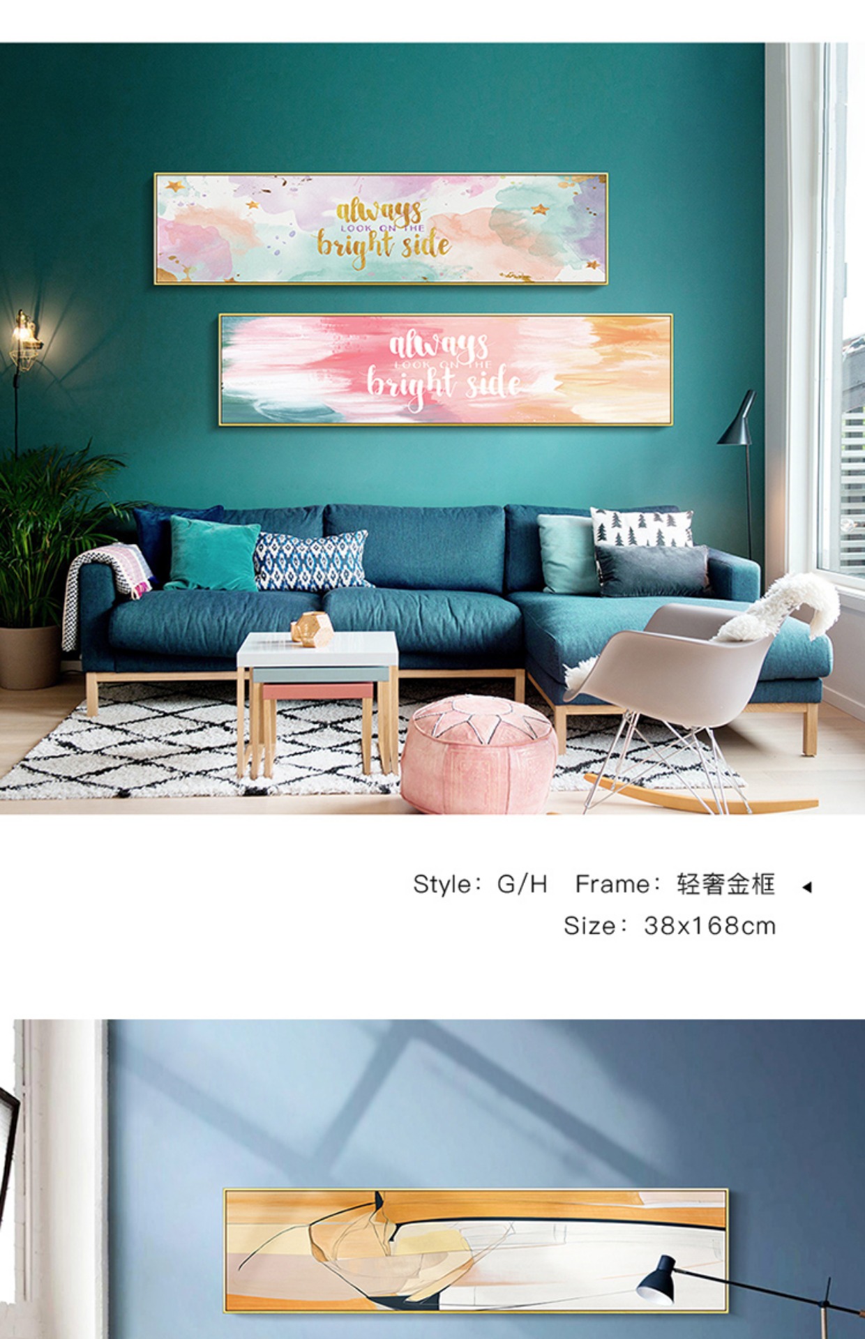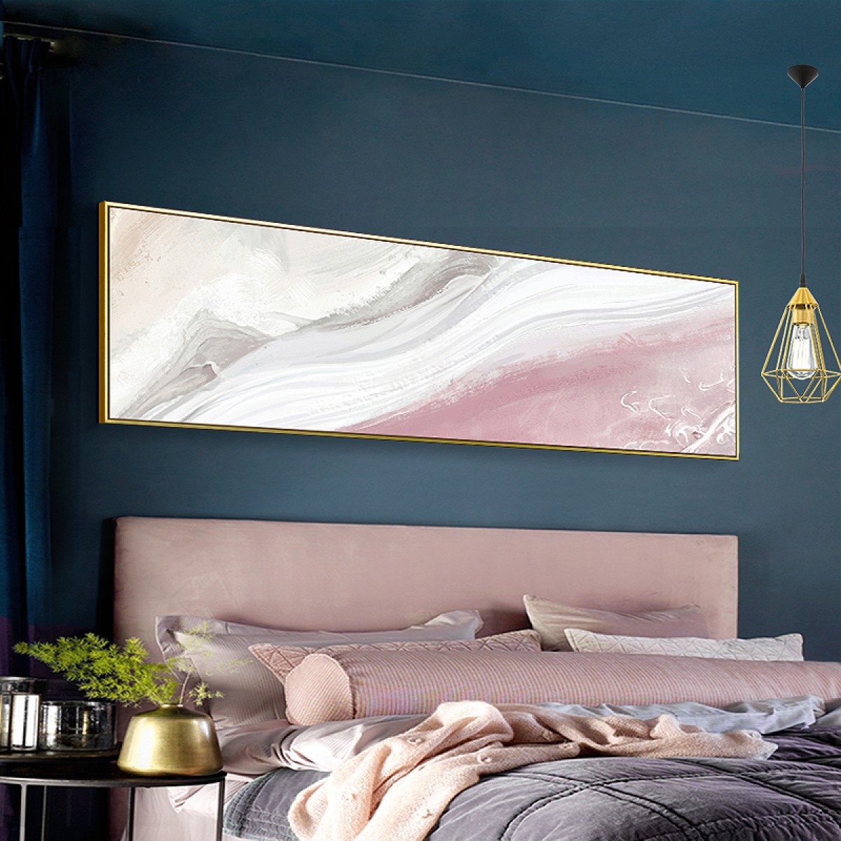 国产 超大客厅装饰画北欧轻奢挂画现代卧室床头墙画横幅抽象样板房壁画