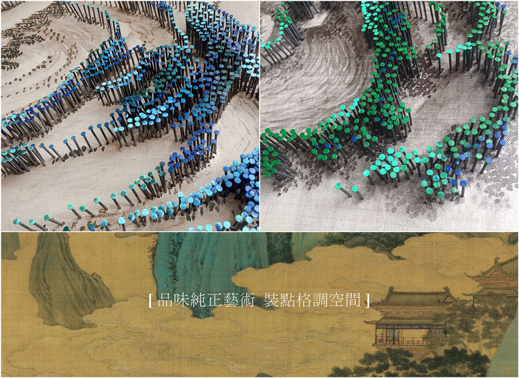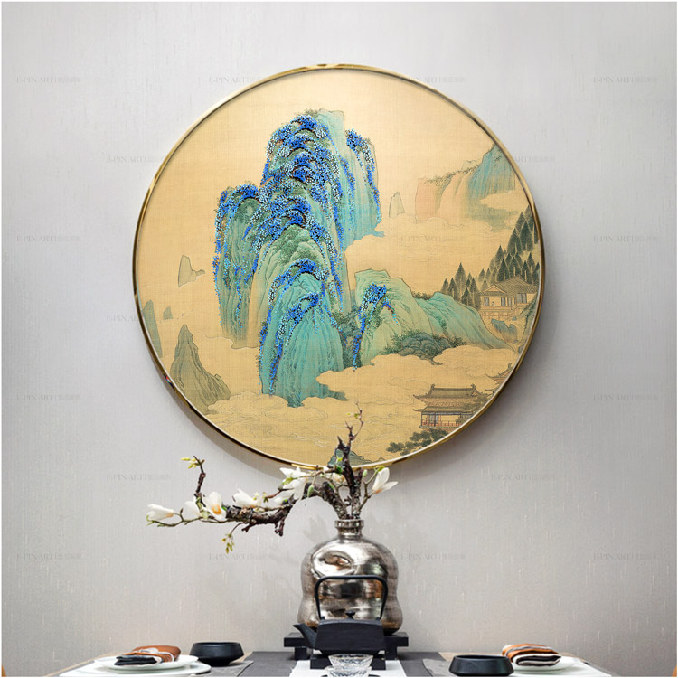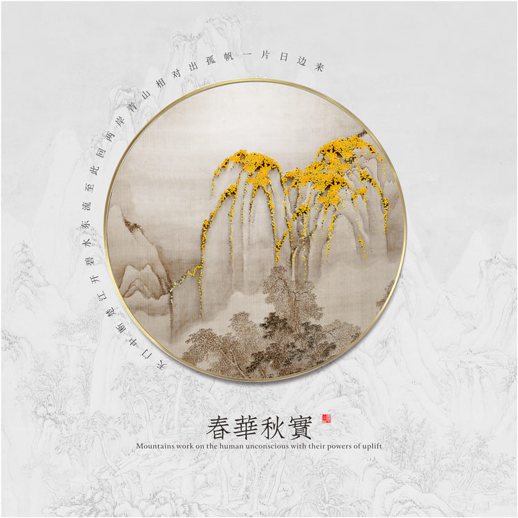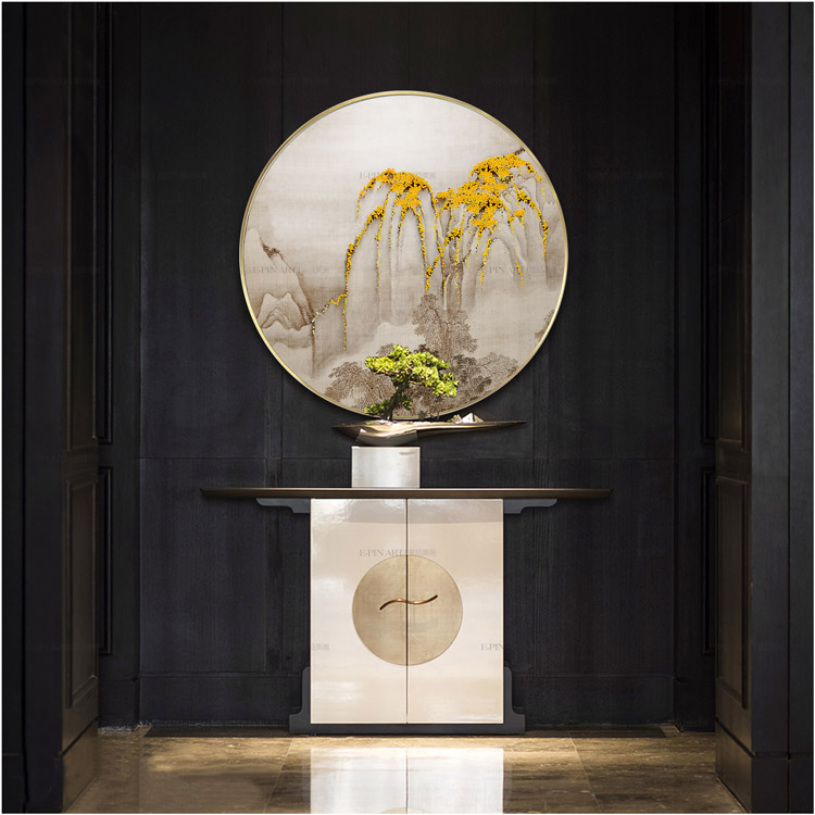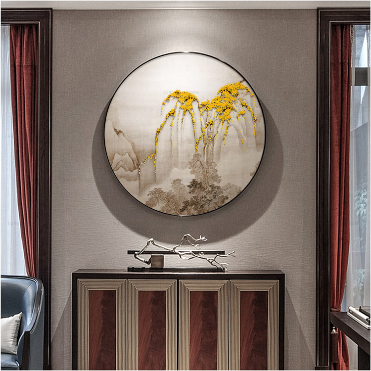 国产 钉子画新中式圆形软装画山水立体装饰画样板房玄关实物画手工挂画
