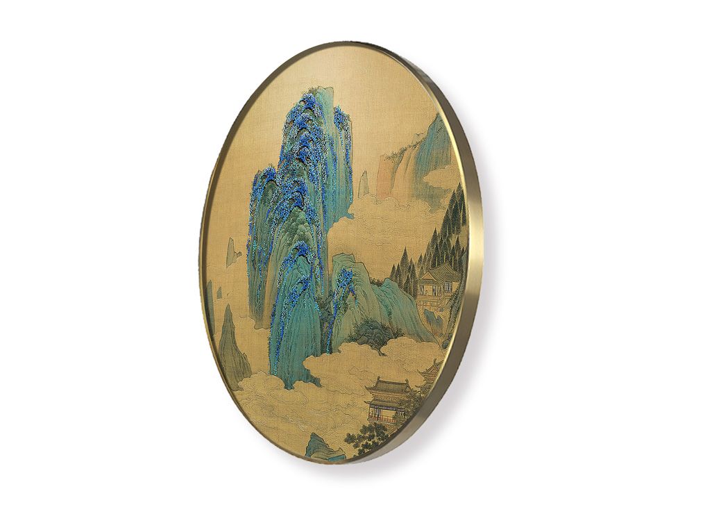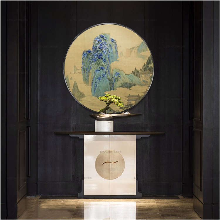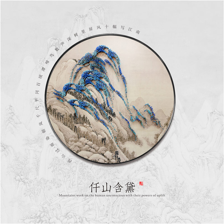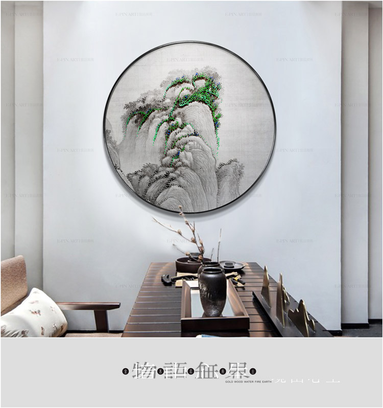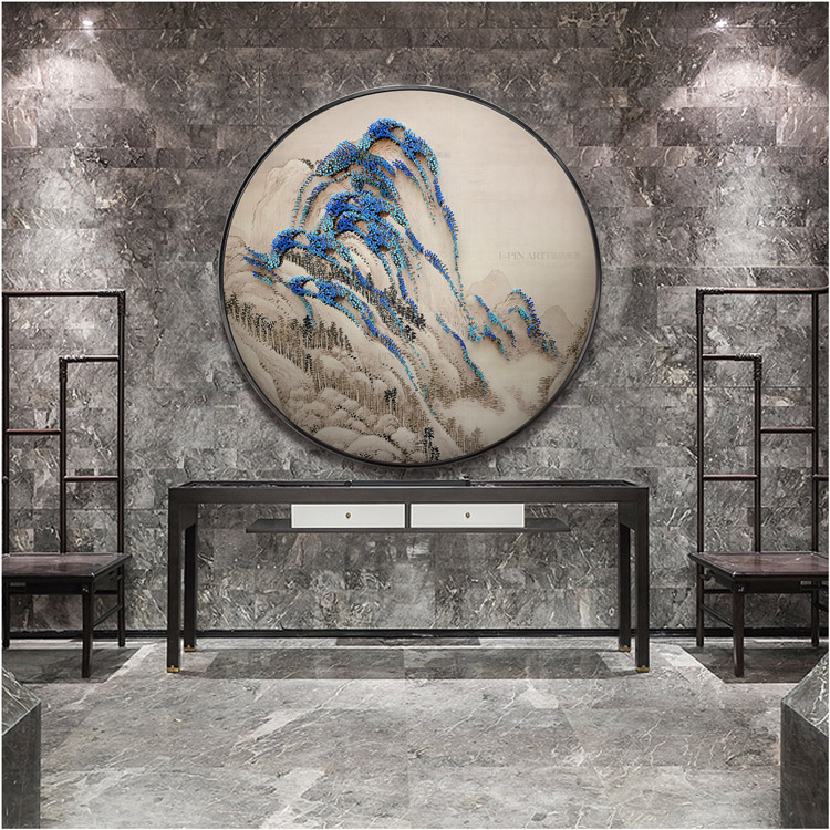 商品名称:国产 钉子画新中式圆形软装画山水立体装饰画样板房玄关实物画手工挂画