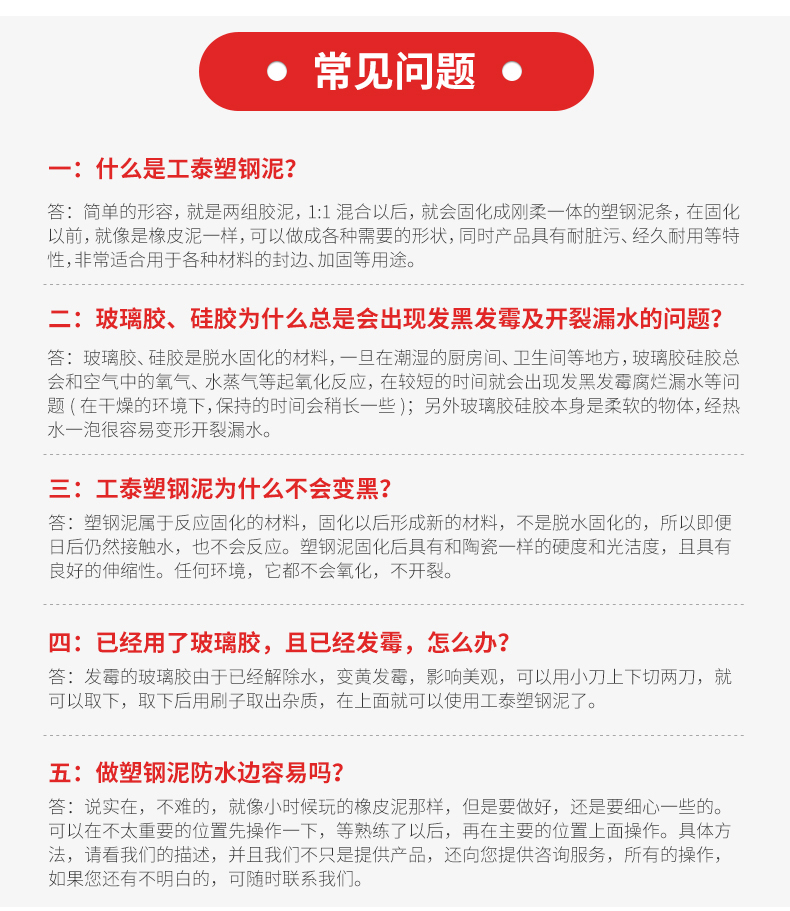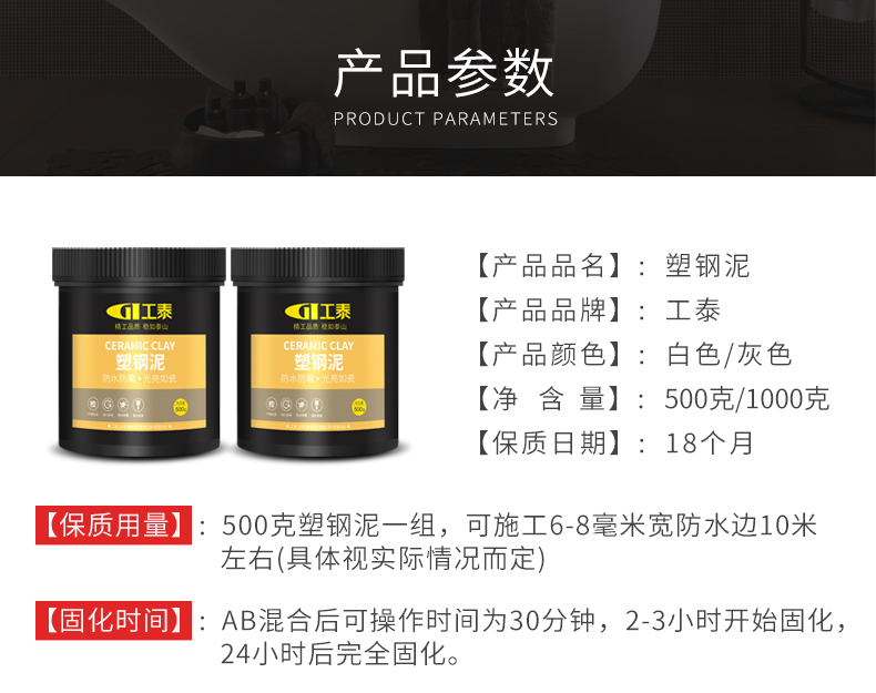商品名称:工泰 家用塑钢泥陶瓷胶防水防污卫生间厕所补漏封边材料填缝堵漏王 GT/SUG01