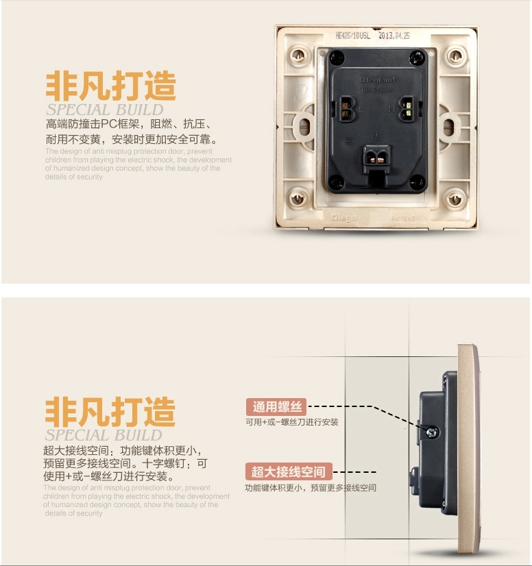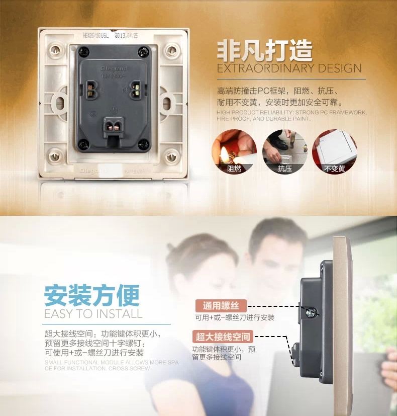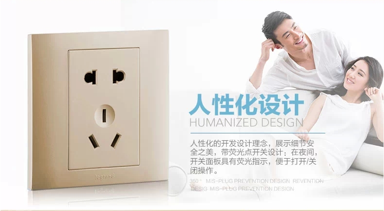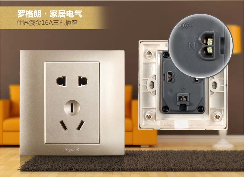罗格朗 86型香槟金二三插五孔插座面板开关家用5孔墙壁电源暗装