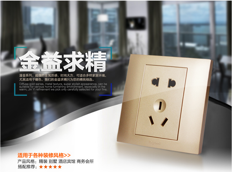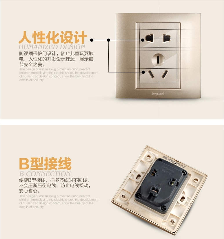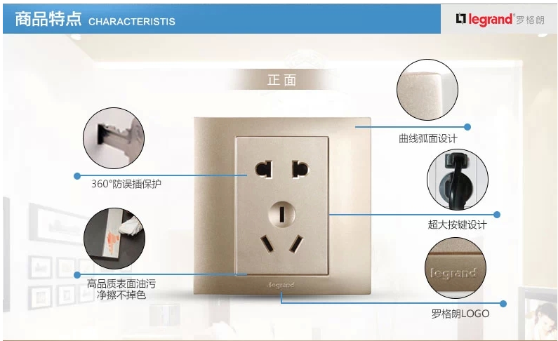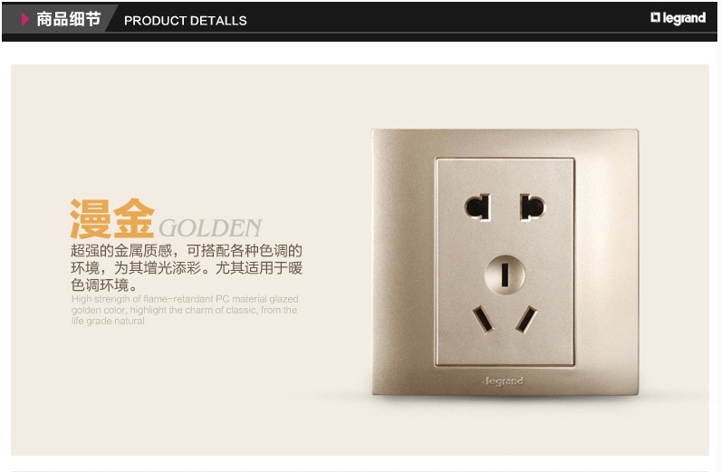 商品名称:罗格朗 86型香槟金二三插五孔插座面板开关家用5孔墙壁电源暗装