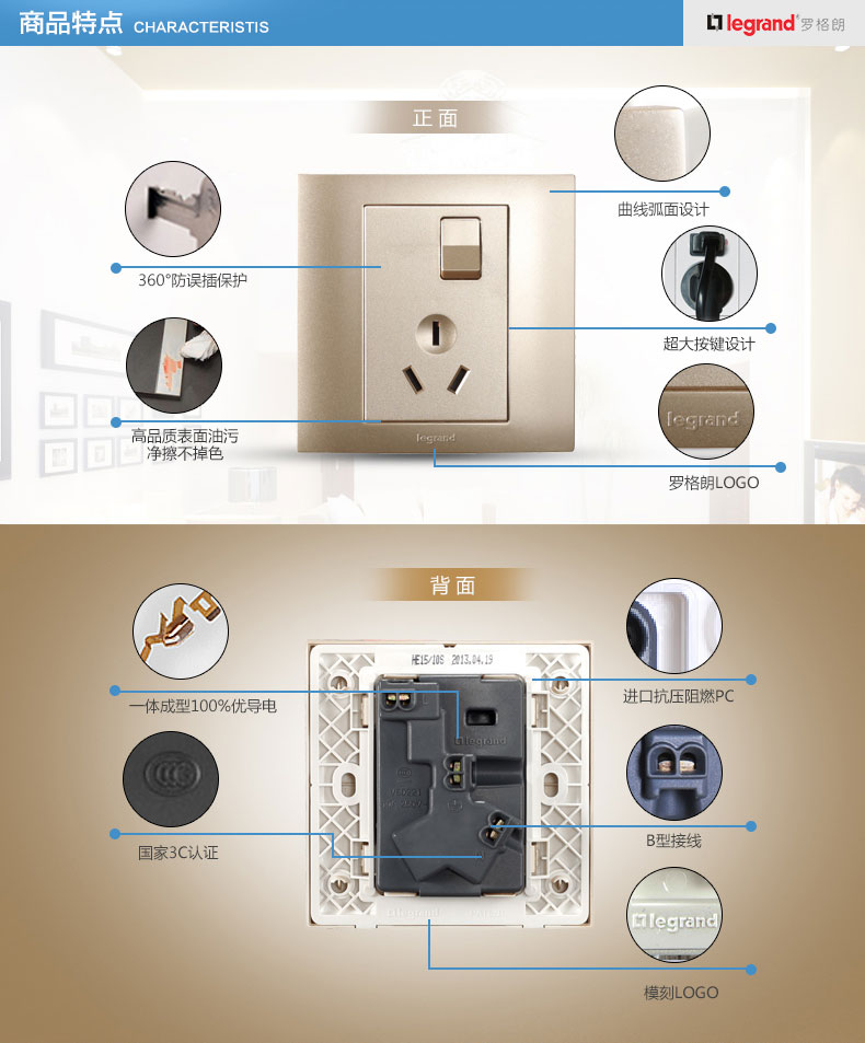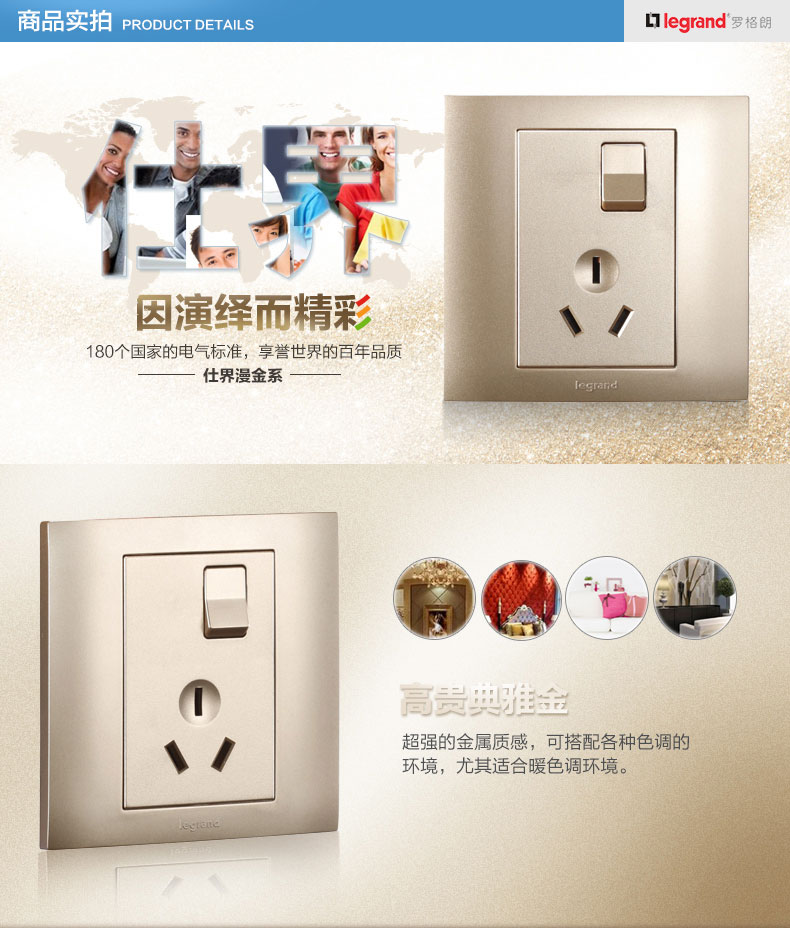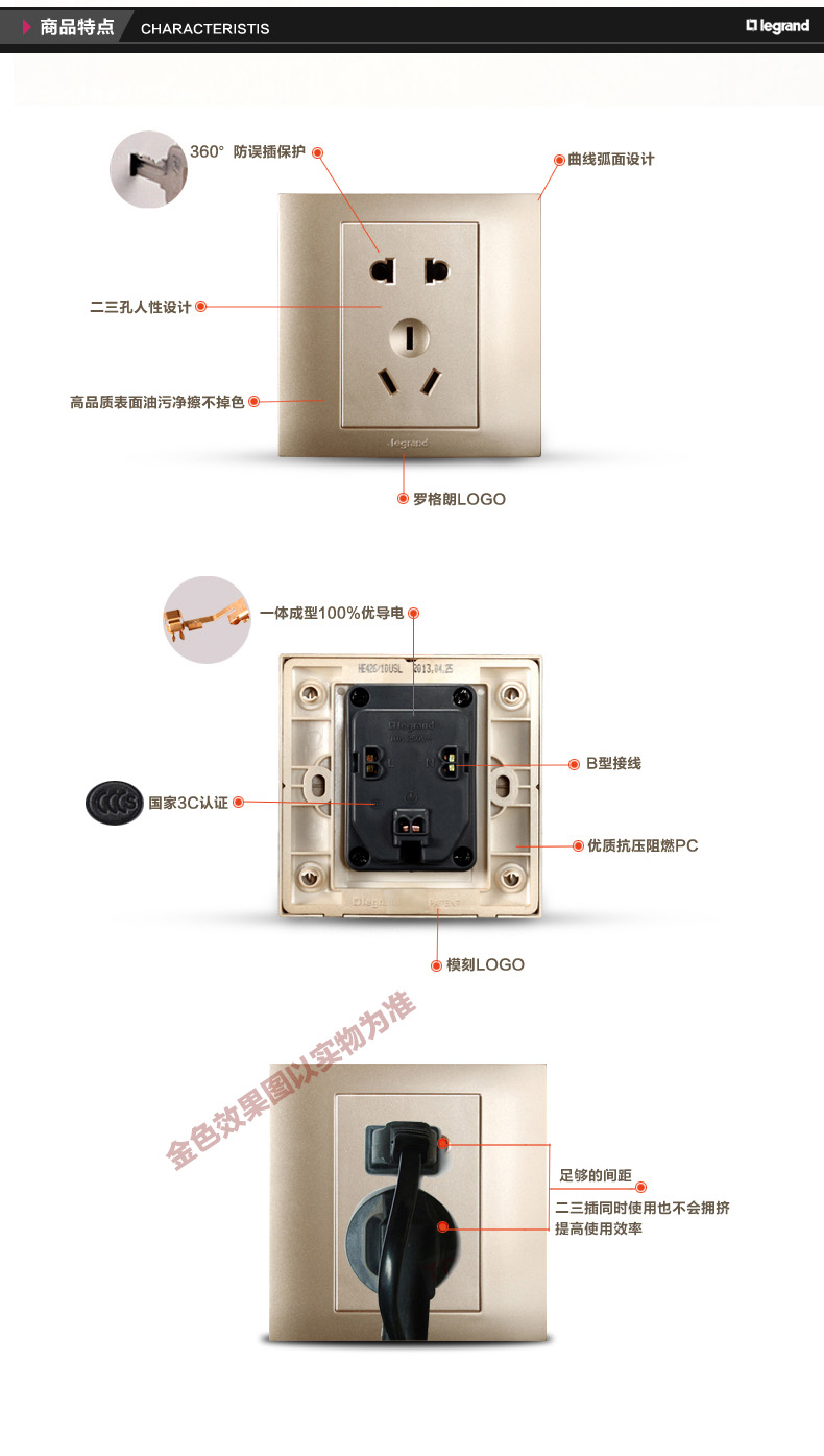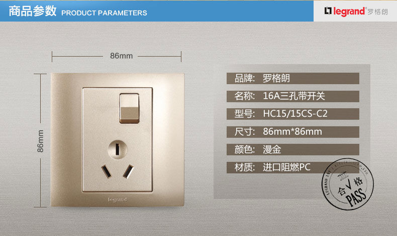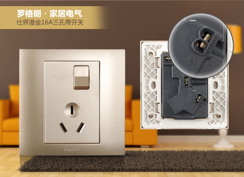 商品名称:罗格朗 16a空调专用插座带开关面板大功率家用电热水器一开三孔