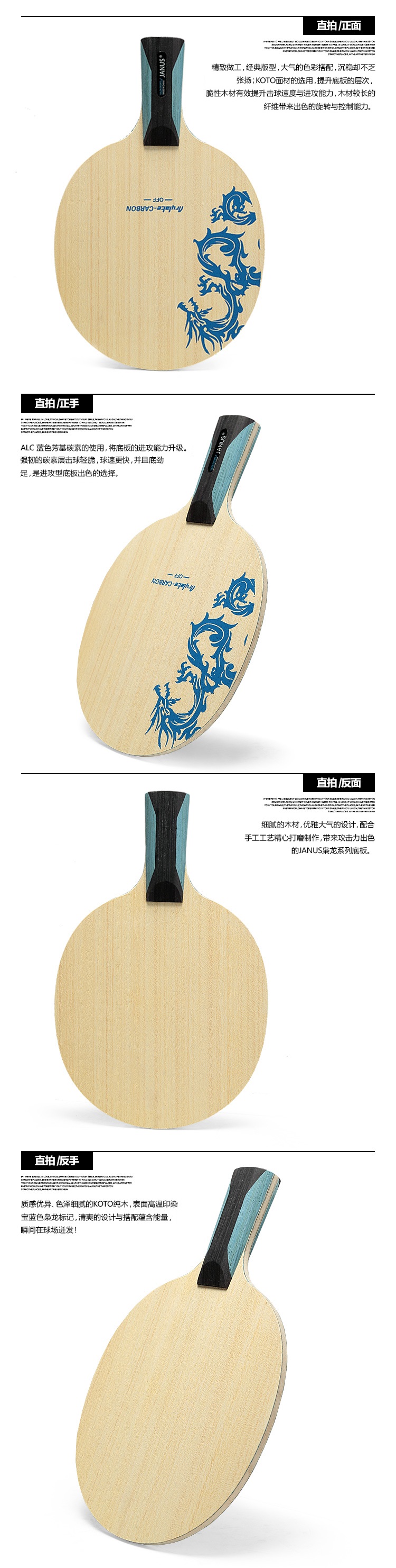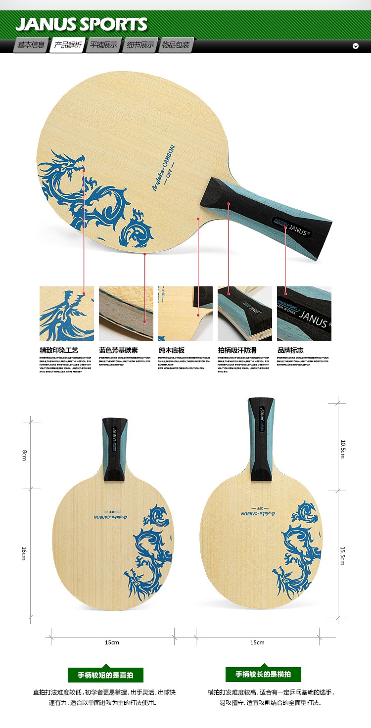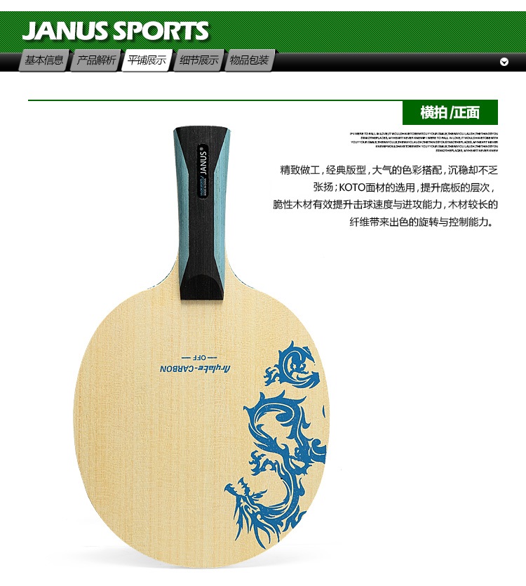 商品名称:JANUS 枭龙系列 ALC碳素纤维 7层乒乓球底板 乒乓拍 球拍 JA992